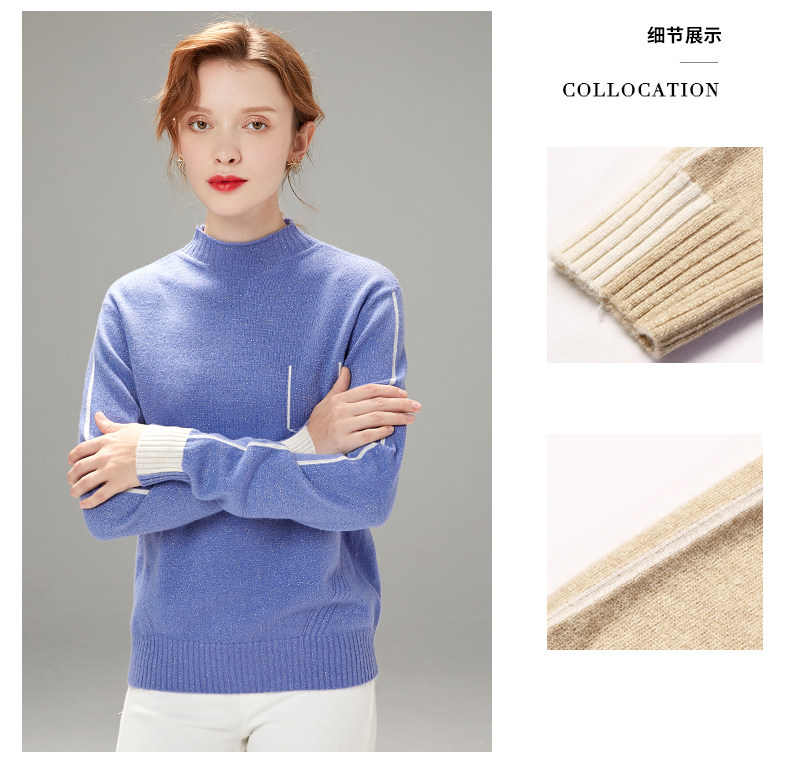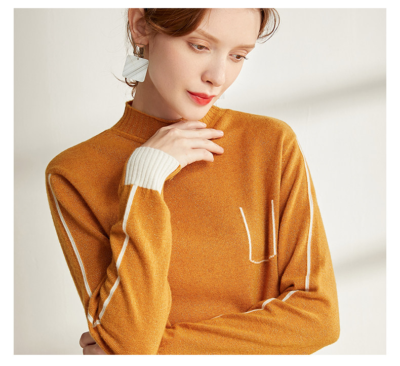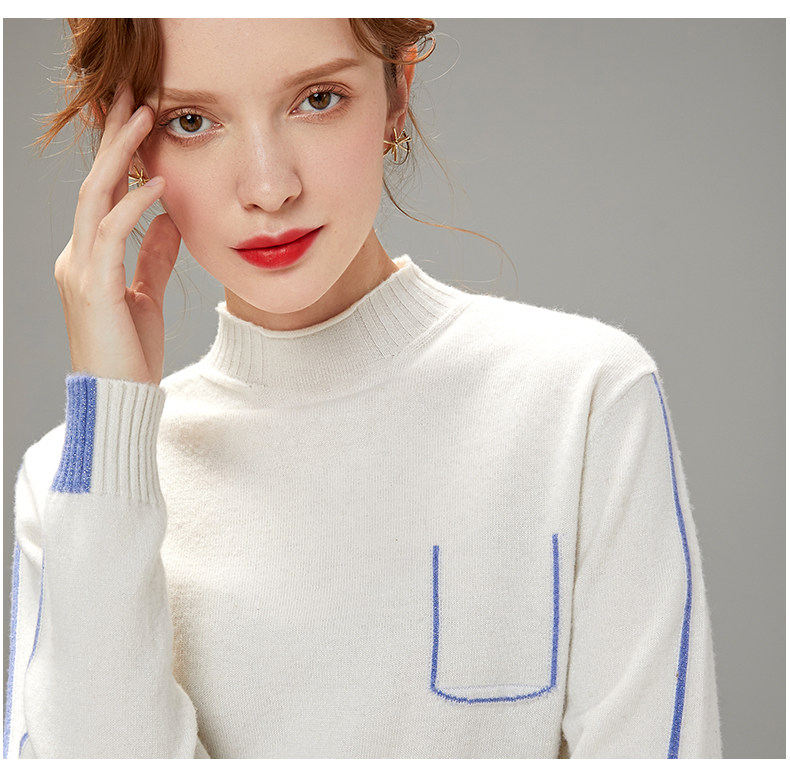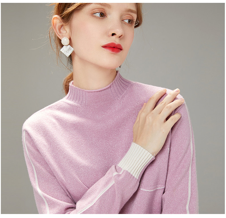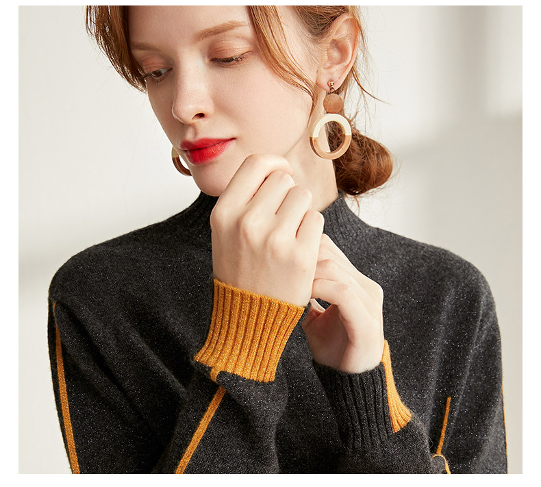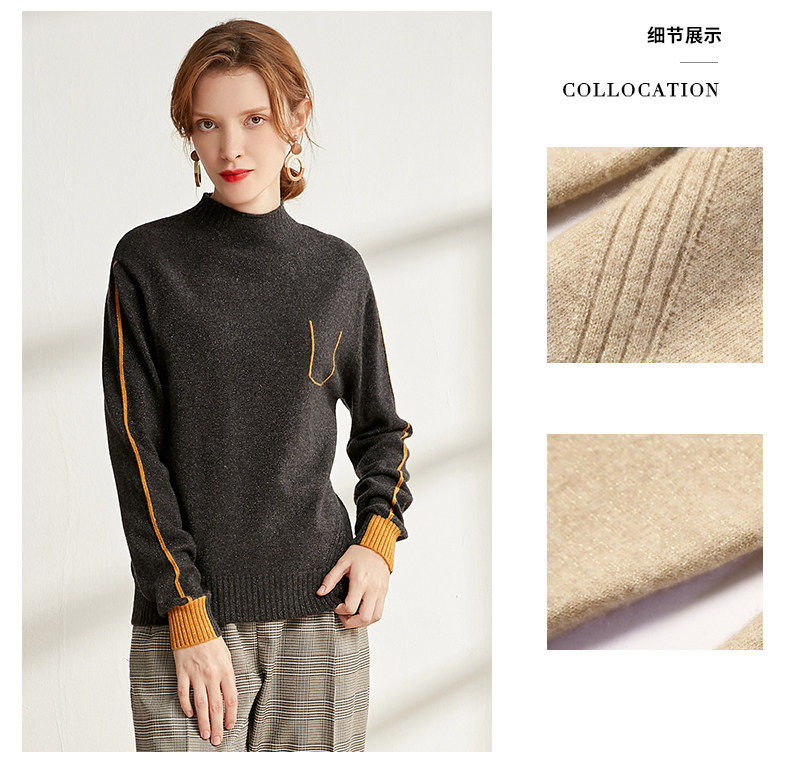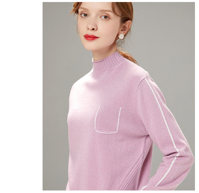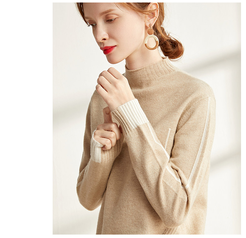 PY-19623 秋冬半高领毛衣女套头韩版宽松外穿加厚羊毛衫拼色短款打底针织衫