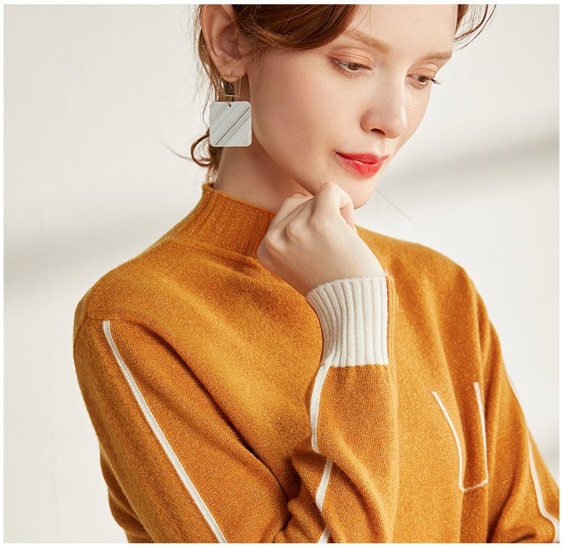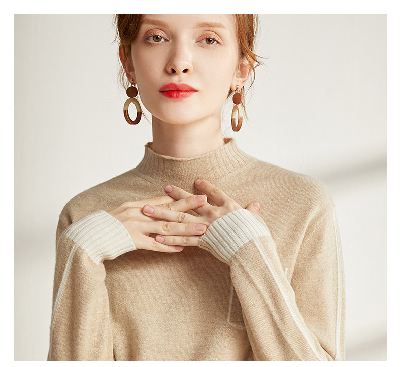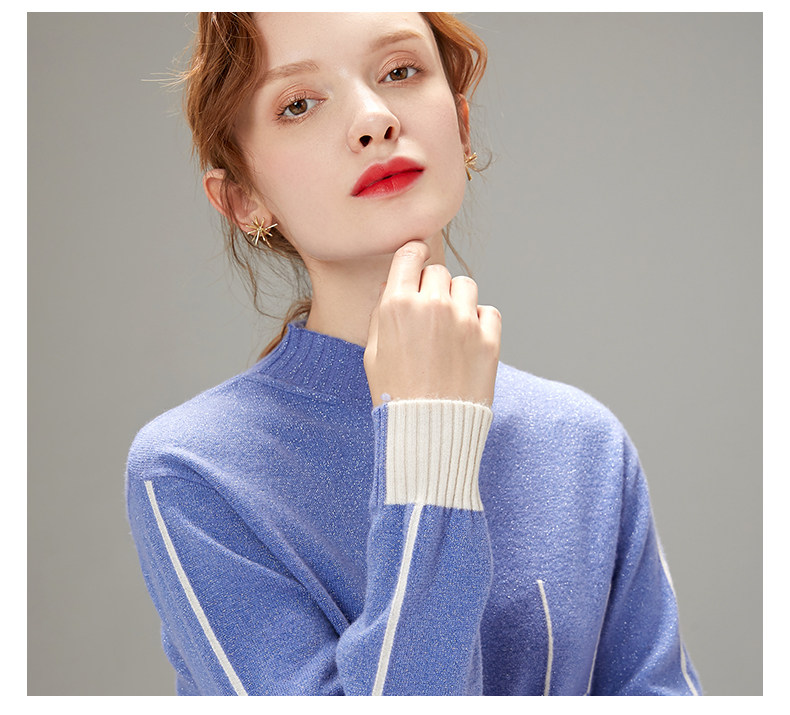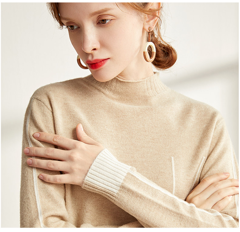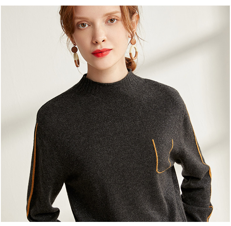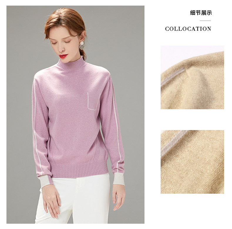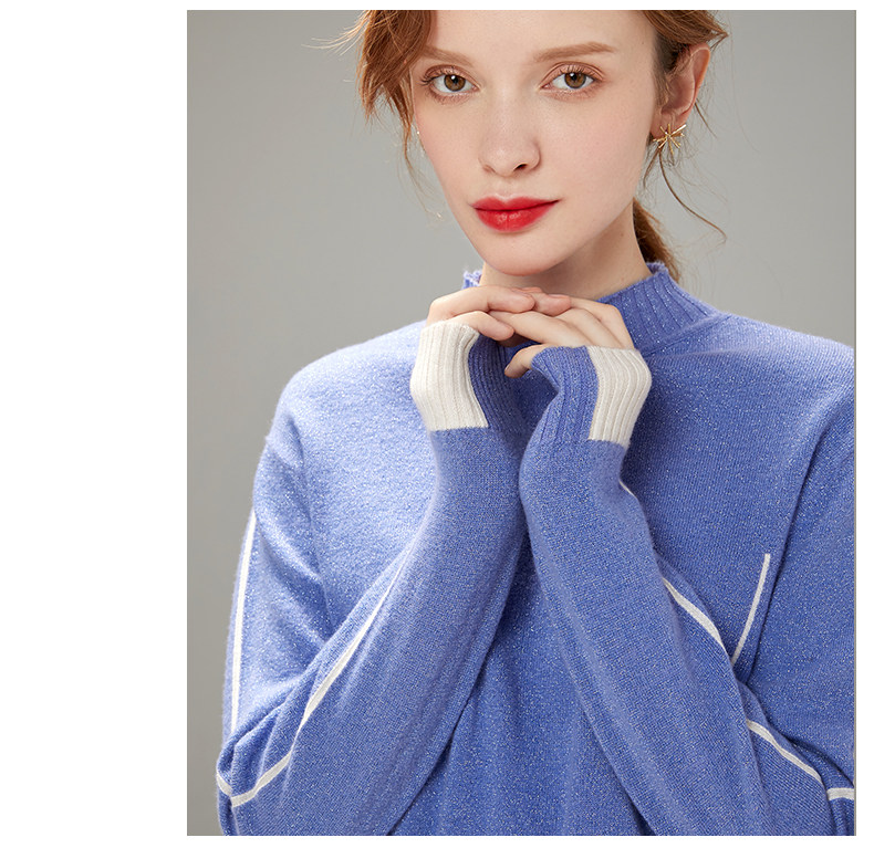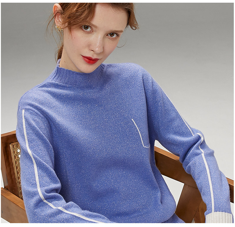 PY-19623 秋冬半高领毛衣女套头韩版宽松外穿加厚羊毛衫拼色短款打底针织衫