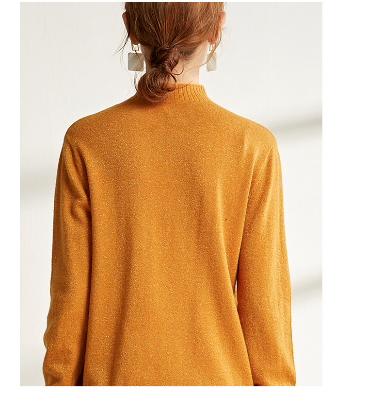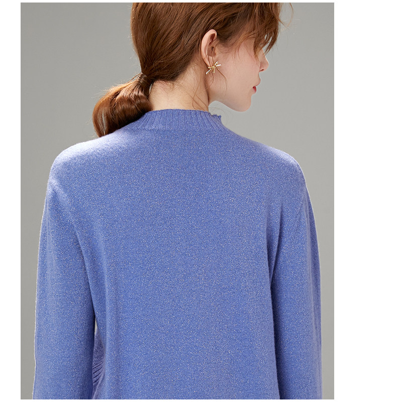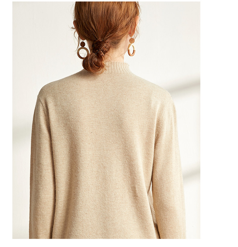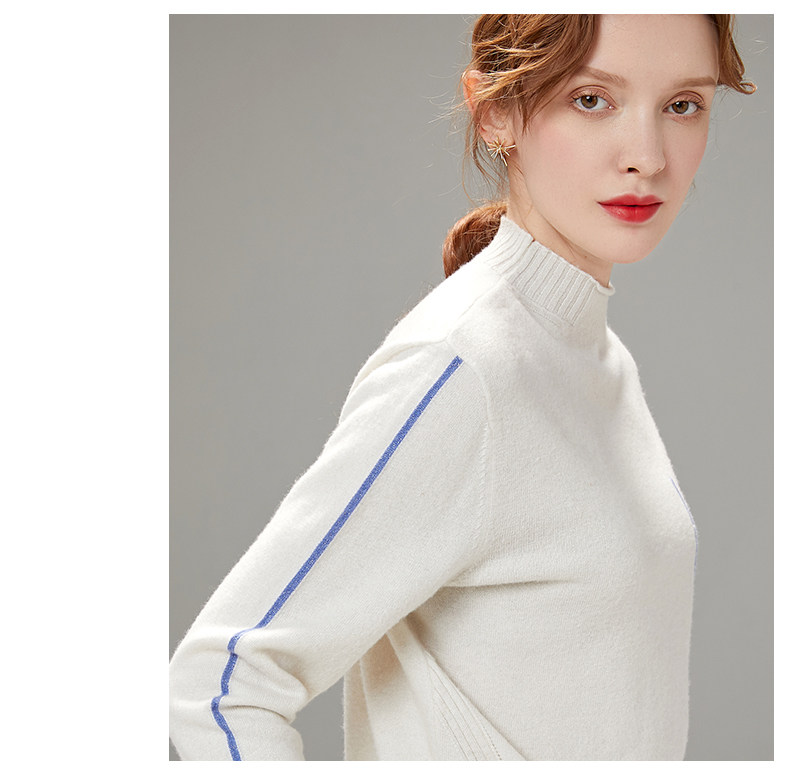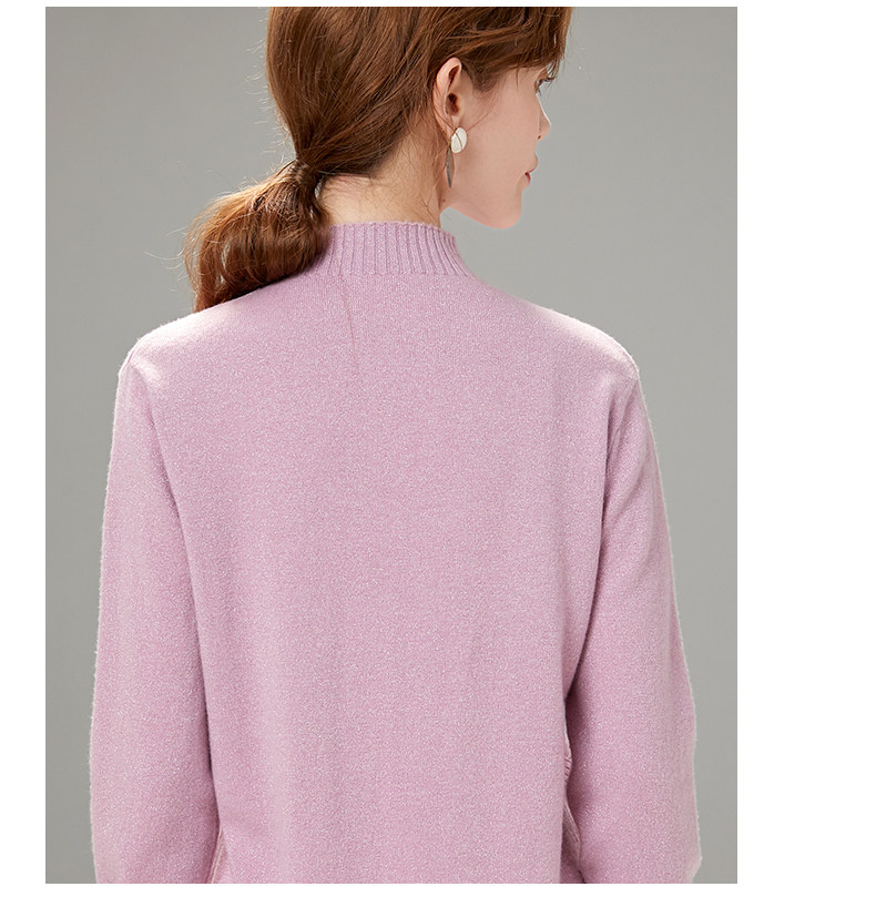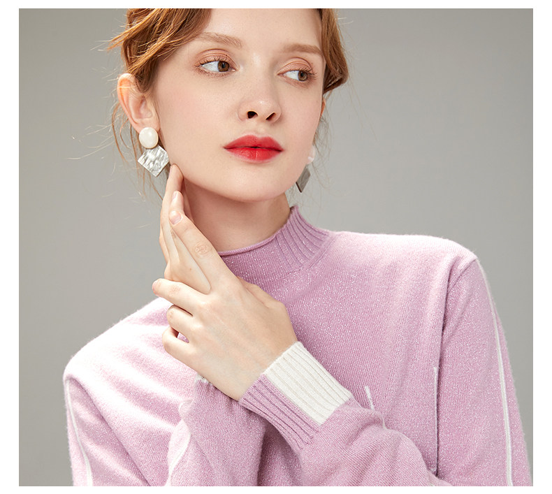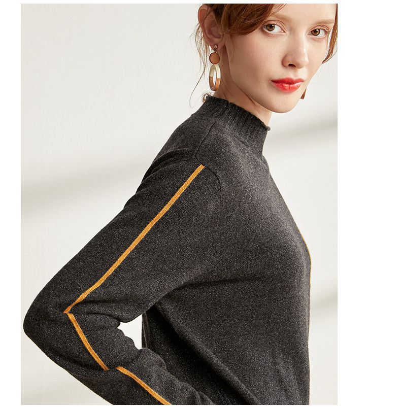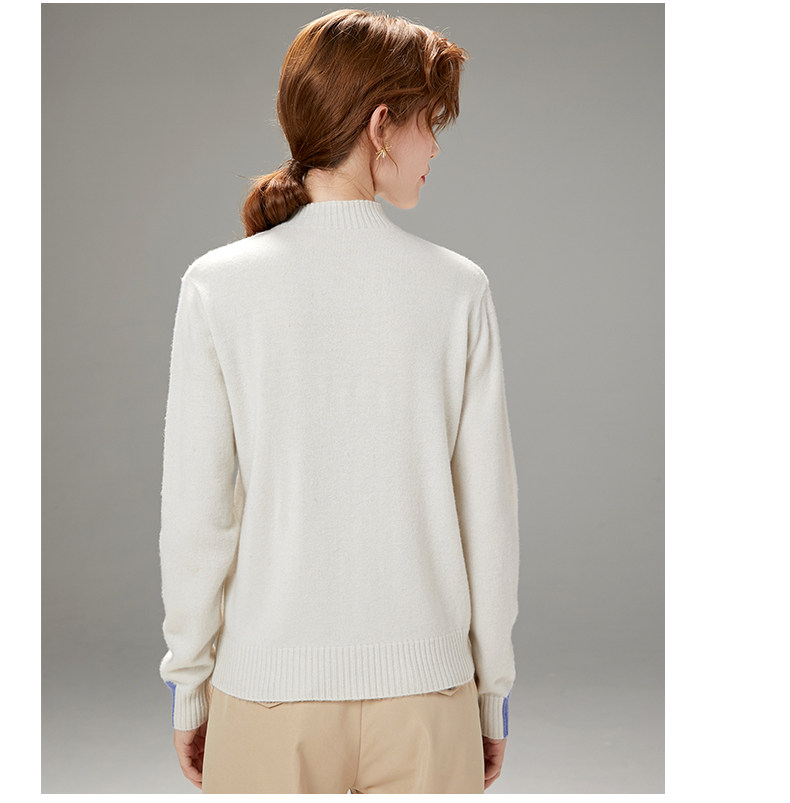 PY-19623 秋冬半高领毛衣女套头韩版宽松外穿加厚羊毛衫拼色短款打底针织衫