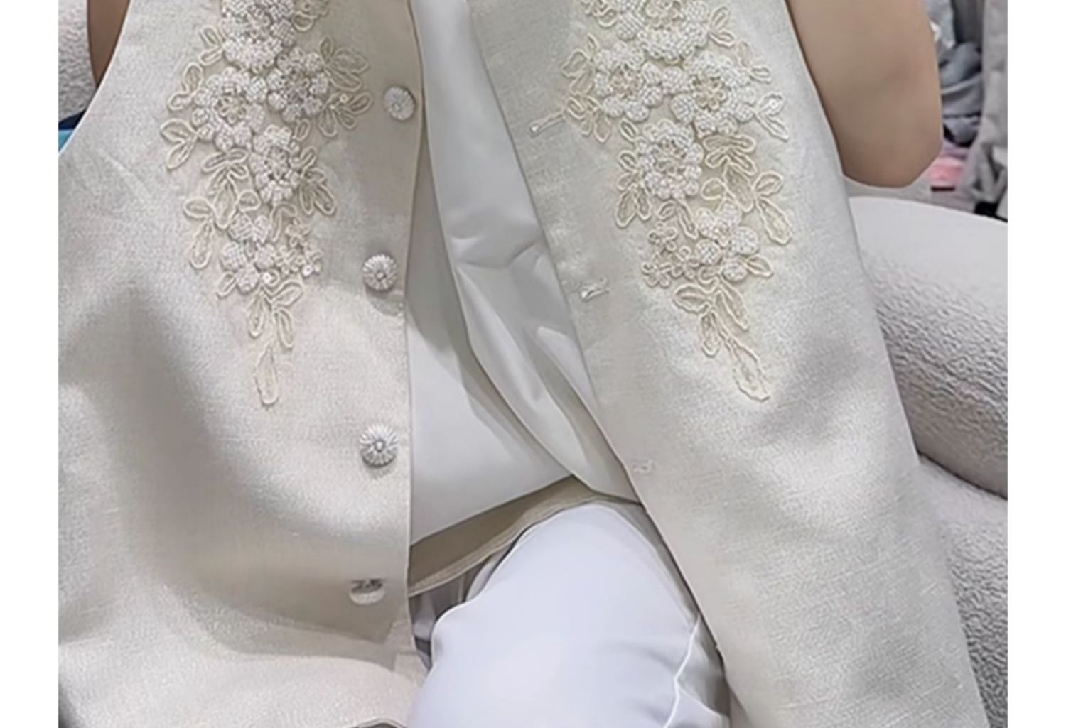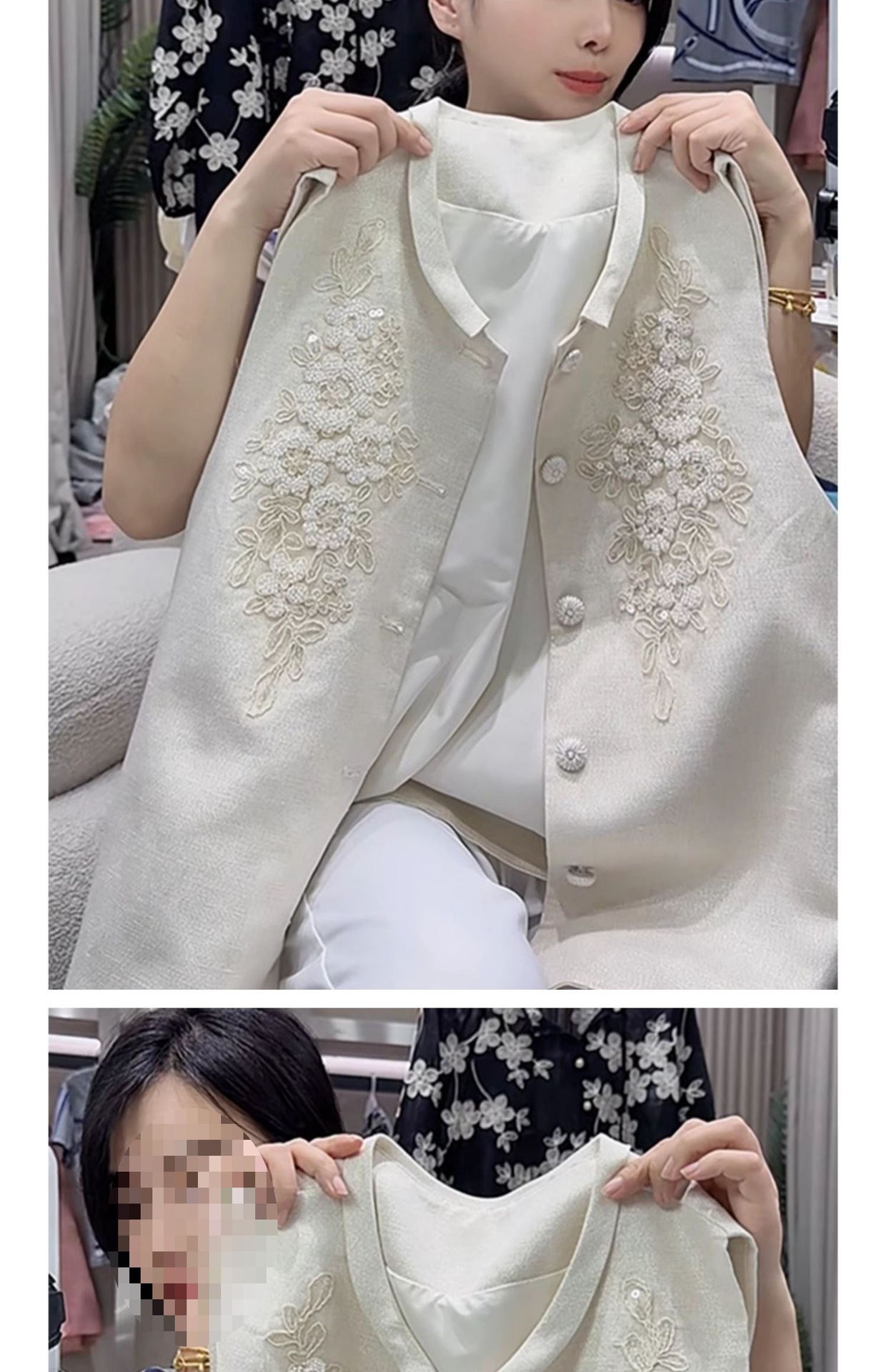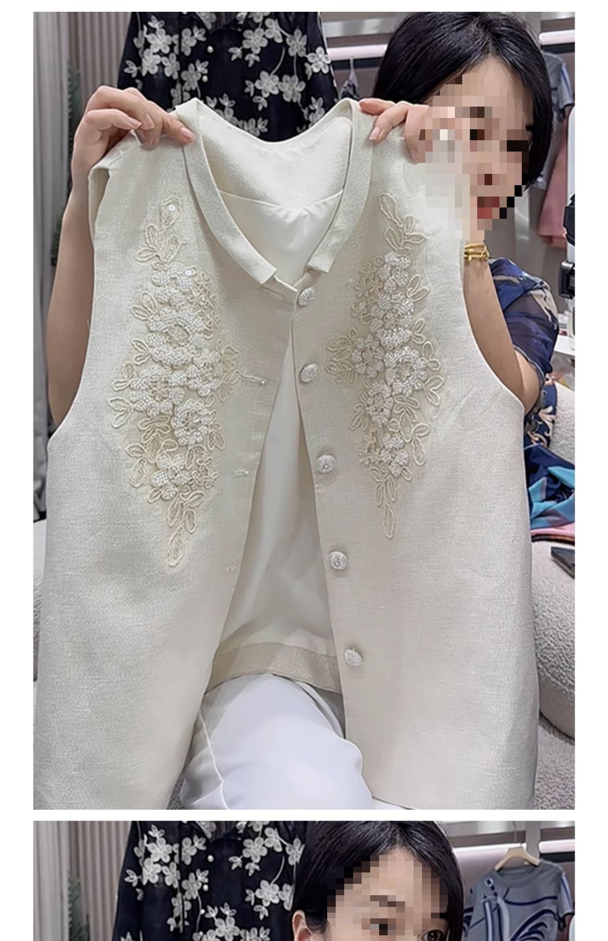 时尚轻奢中式米白色国风刺绣马甲女2025夏季新款休闲百搭上衣外套