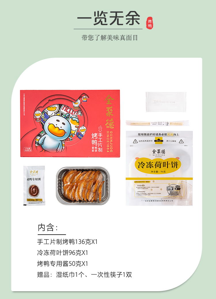 全聚德一人食烤鸭 手工片制烤鸭畅享装 实付金额满99包邮