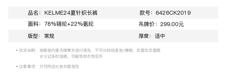 KELME夏城市网球系列夏针织长裤