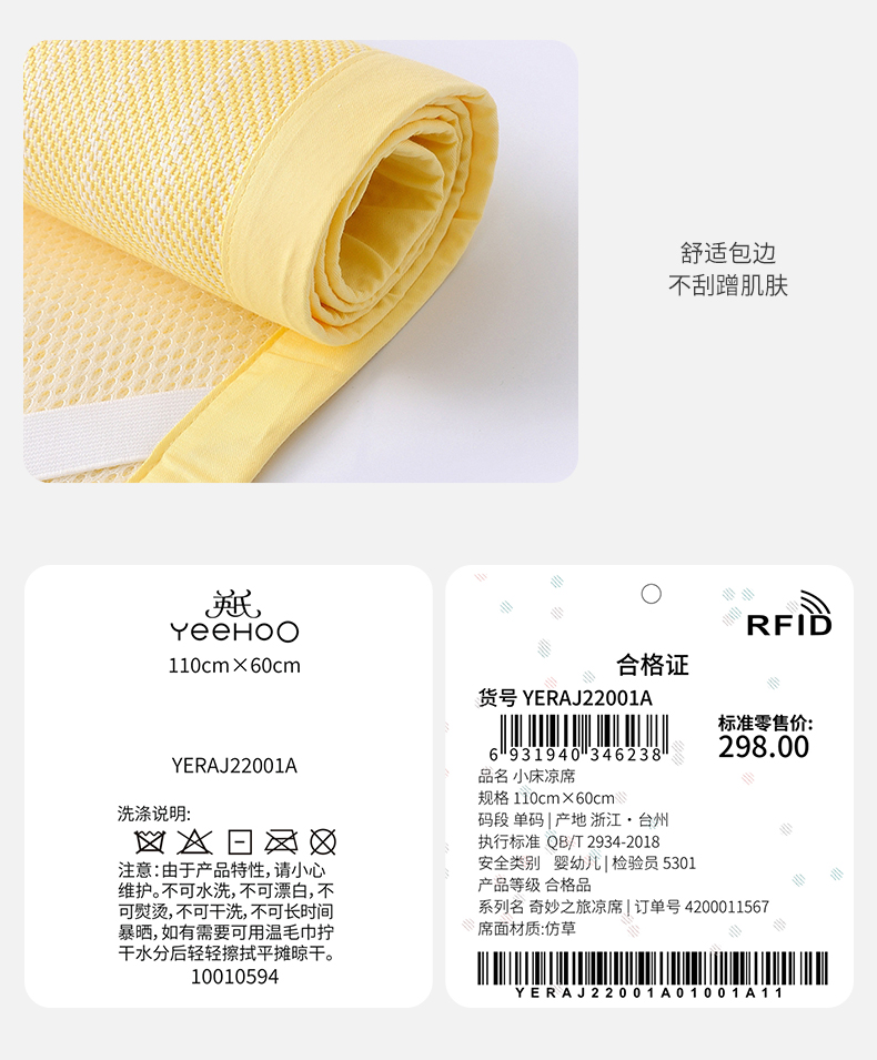 英氏婴儿凉席儿童凉席宝宝婴儿床凉席幼儿园午睡凉席新生儿席子 YERAJ22001A YERAJ22002A
