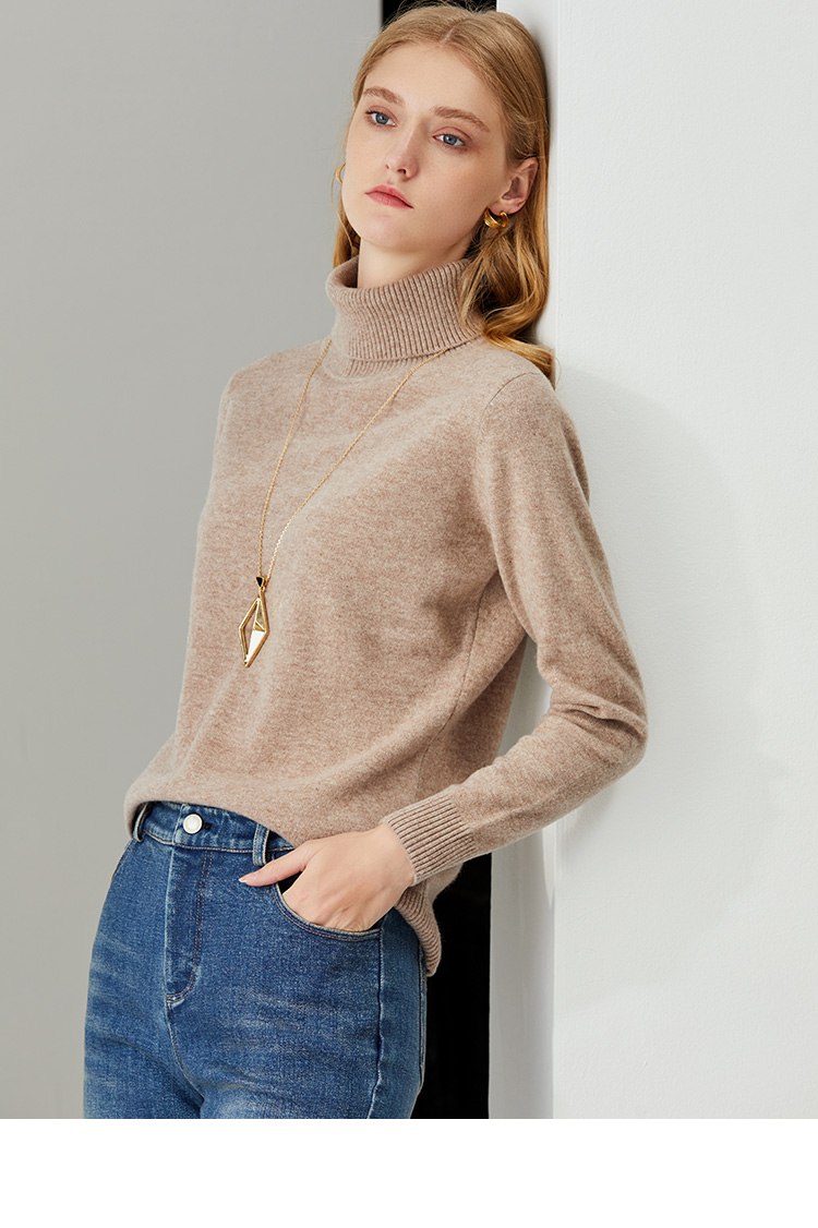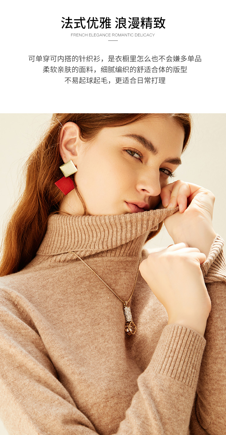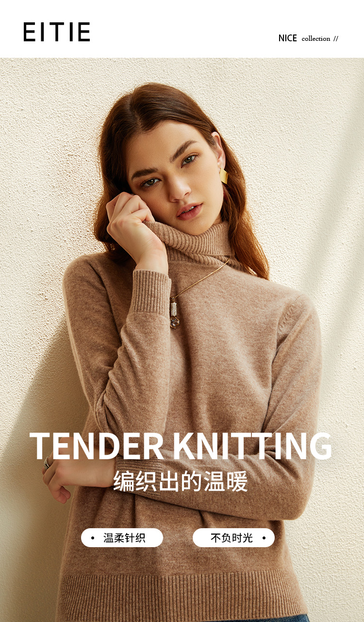 EITIE爱特爱秋季新款显瘦宽松舒适高领保暖纯羊毛套头针织衫C2101810