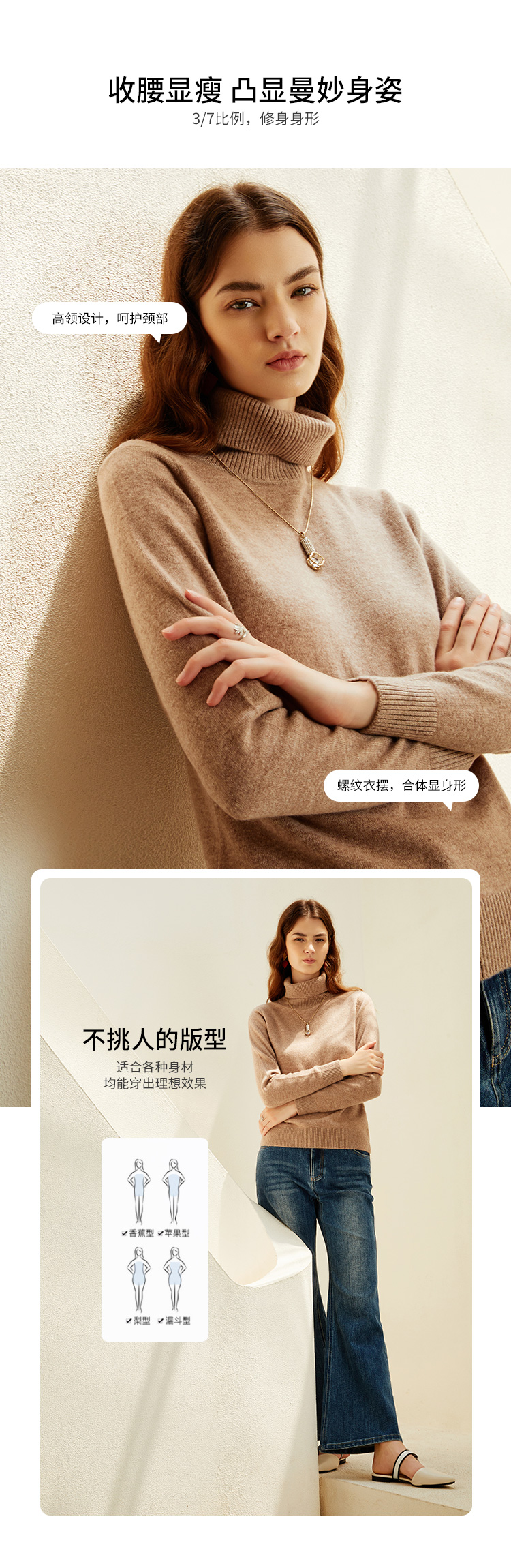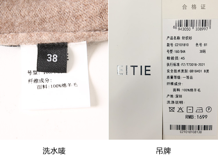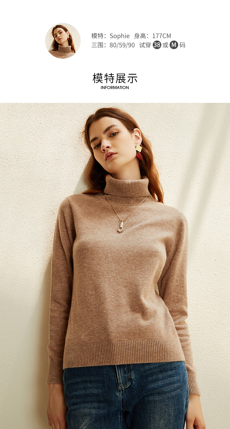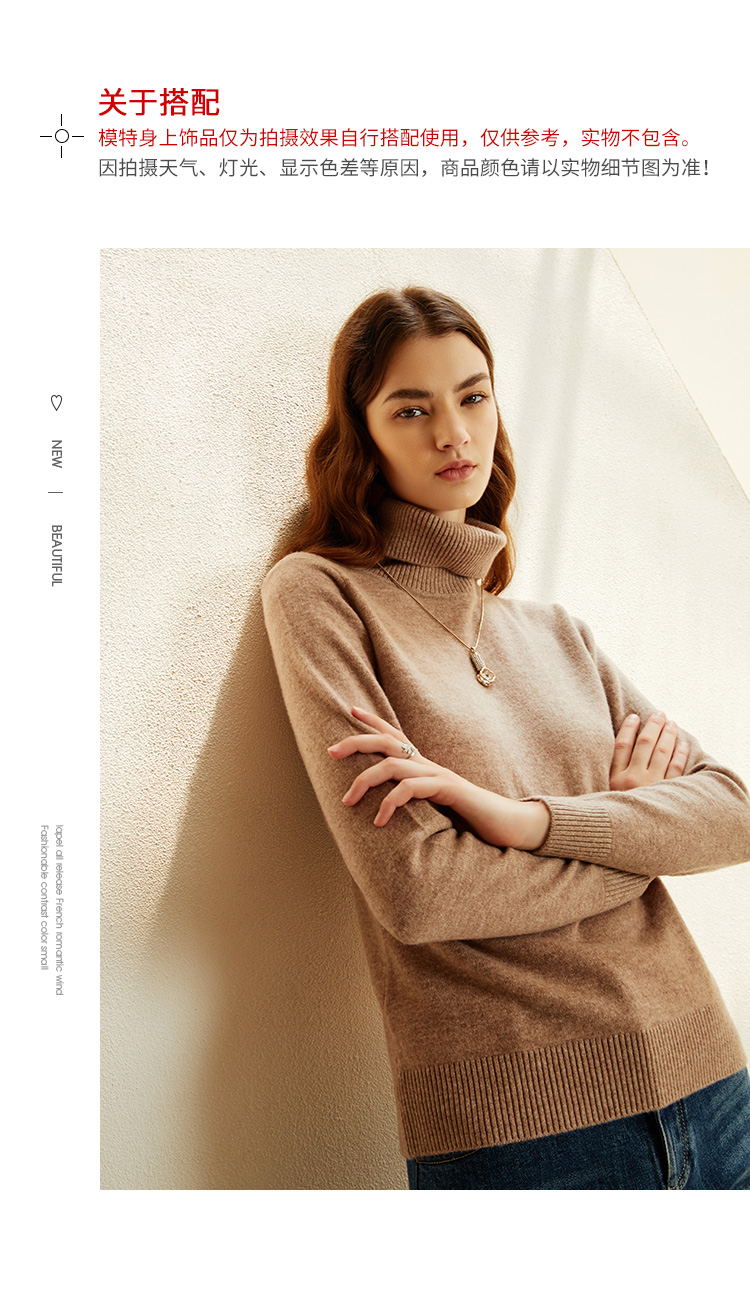 EITIE爱特爱秋季新款显瘦宽松舒适高领保暖纯羊毛套头针织衫C2101810