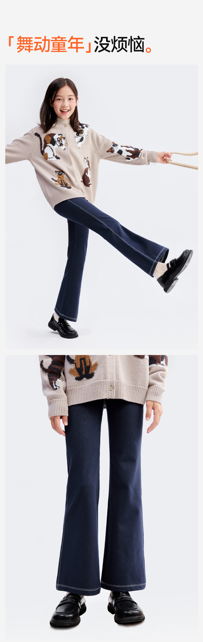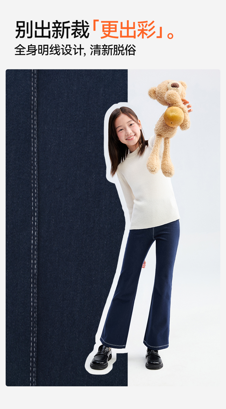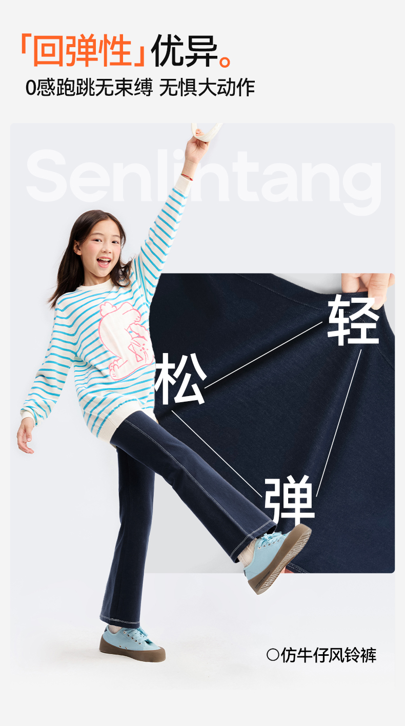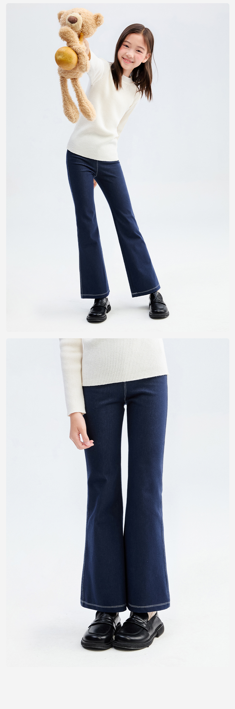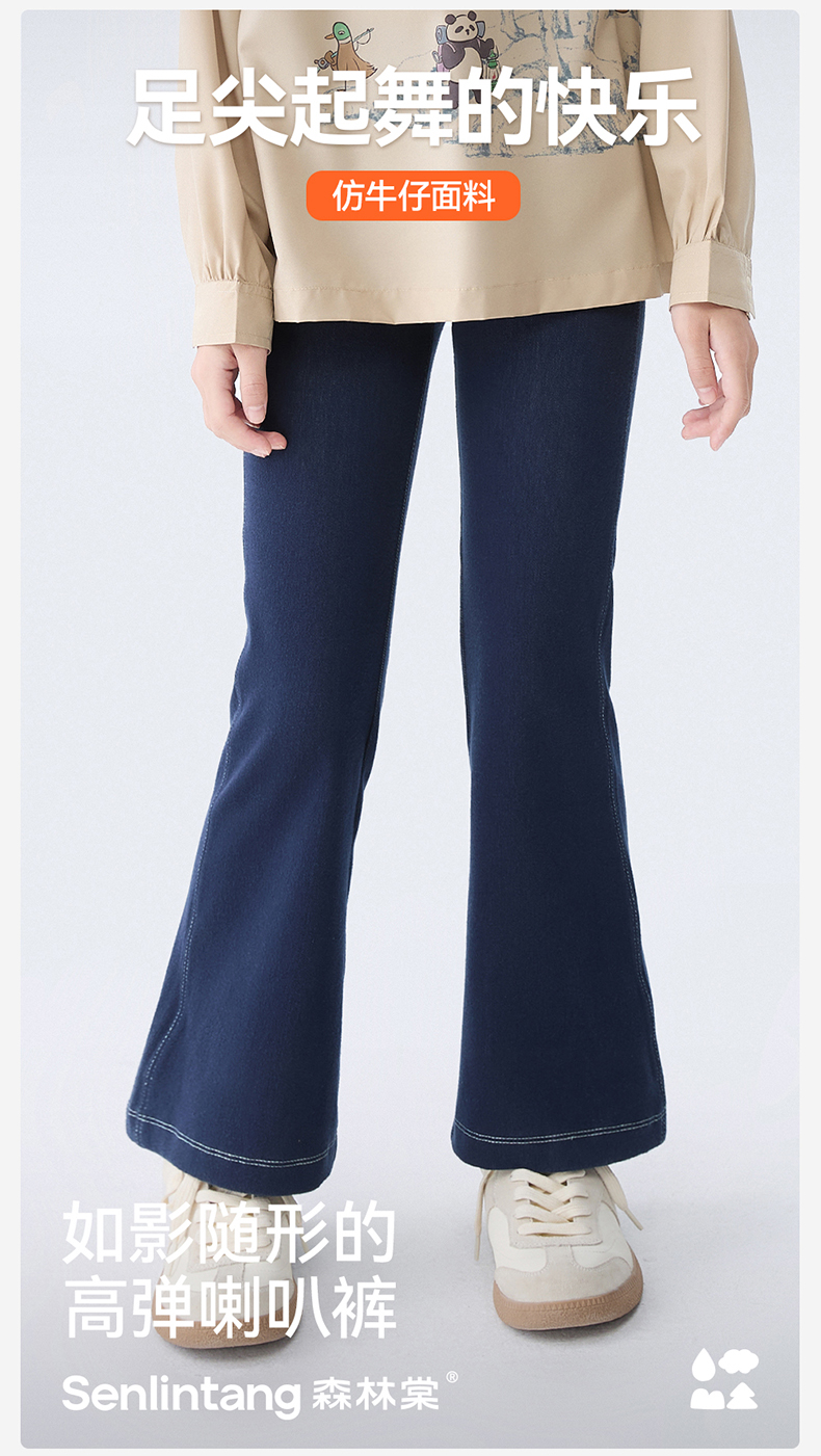 【儿童仿牛仔风铃裤】森林棠25秋款女百搭修身高弹力喇叭裤21092501