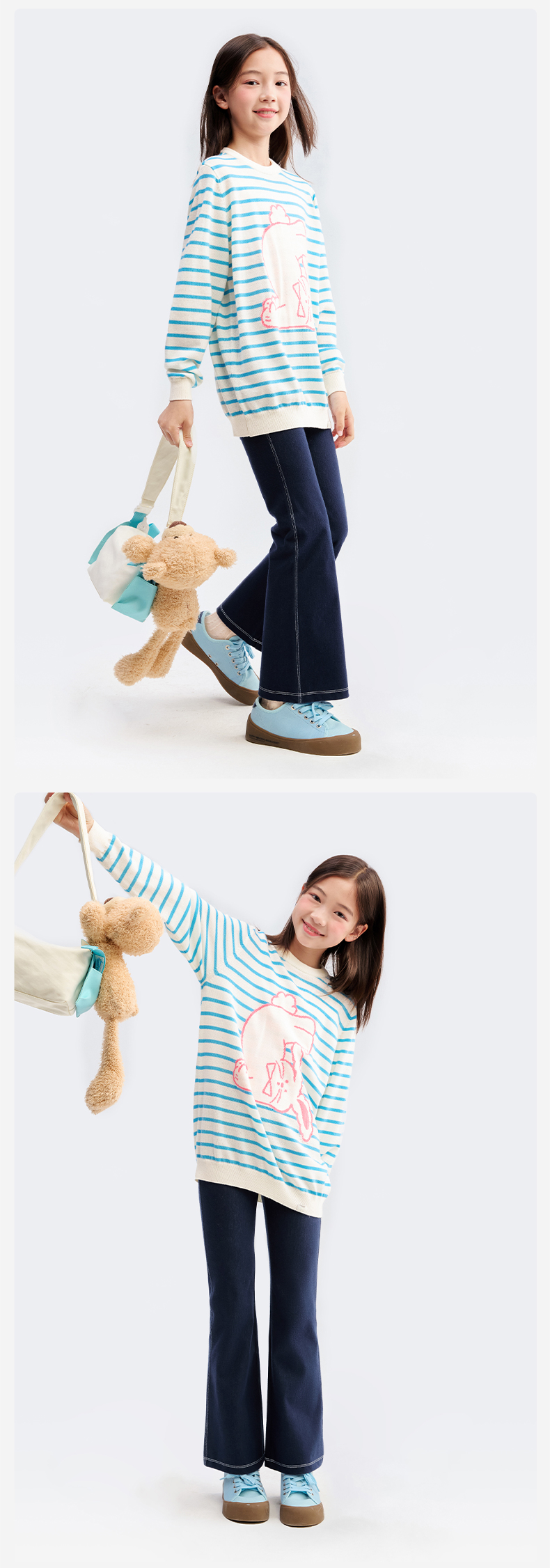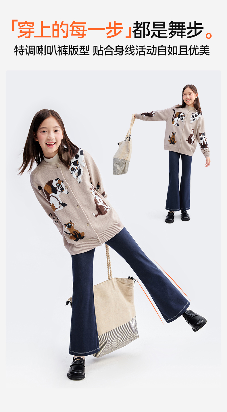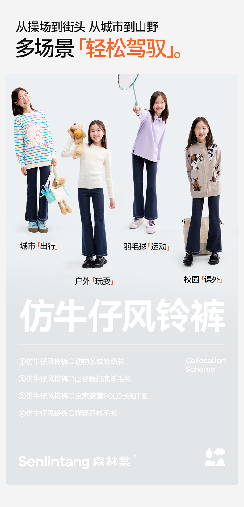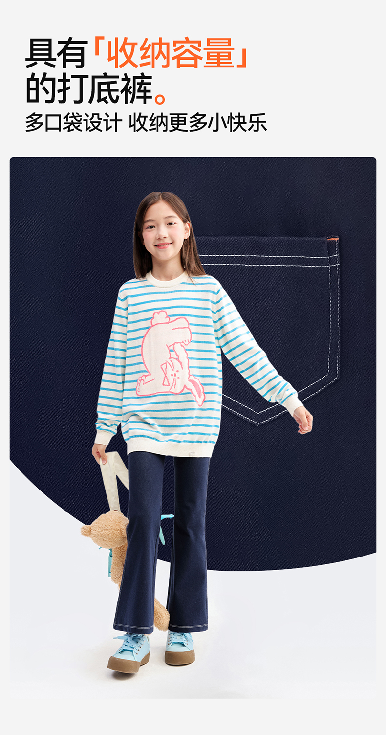 【儿童仿牛仔风铃裤】森林棠25秋款女百搭修身高弹力喇叭裤21092501