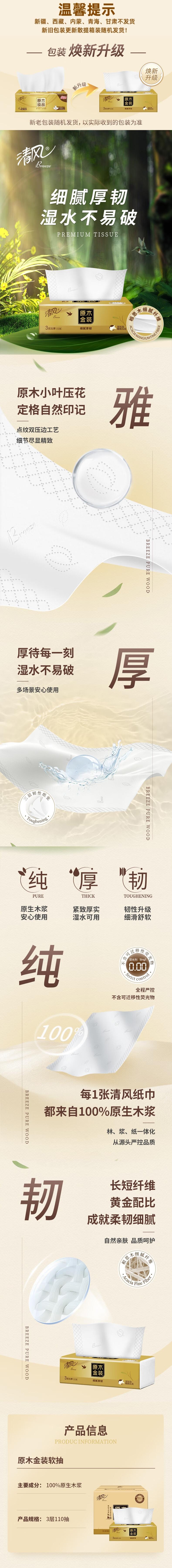 清风 原木金装抽纸3层110抽4包*1提 B0MJ04B-01T