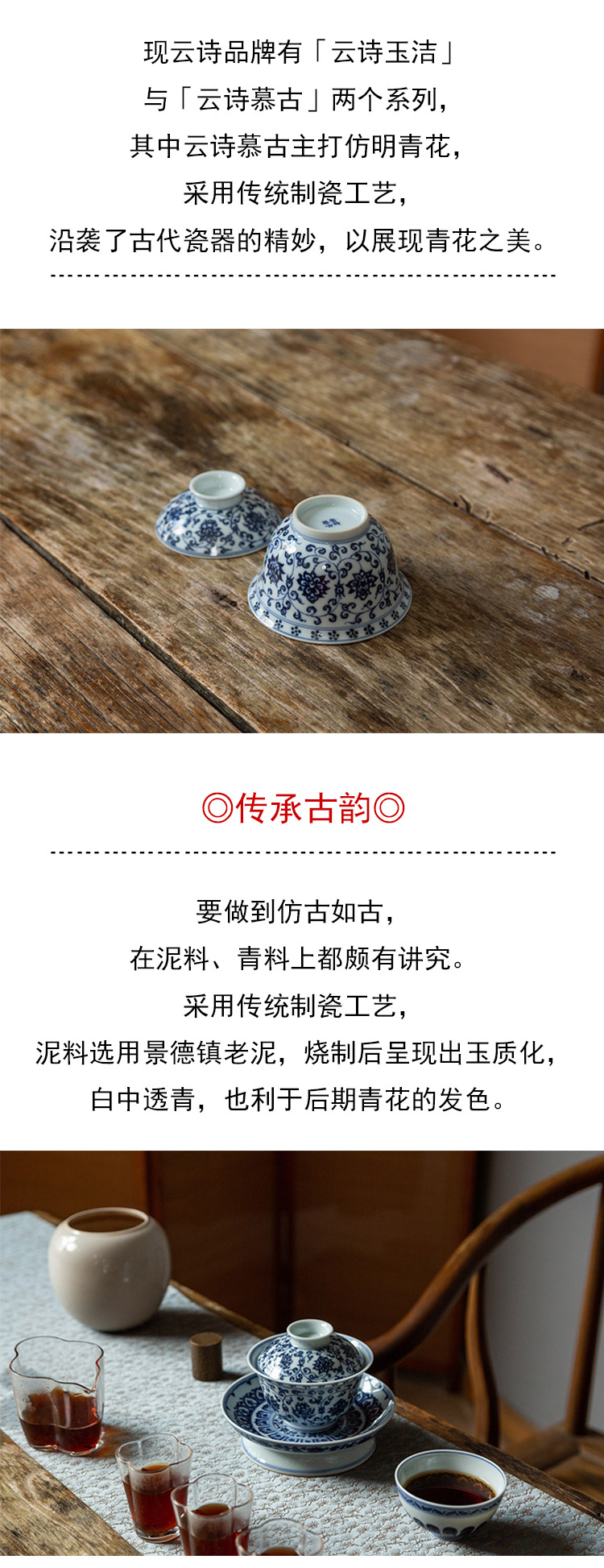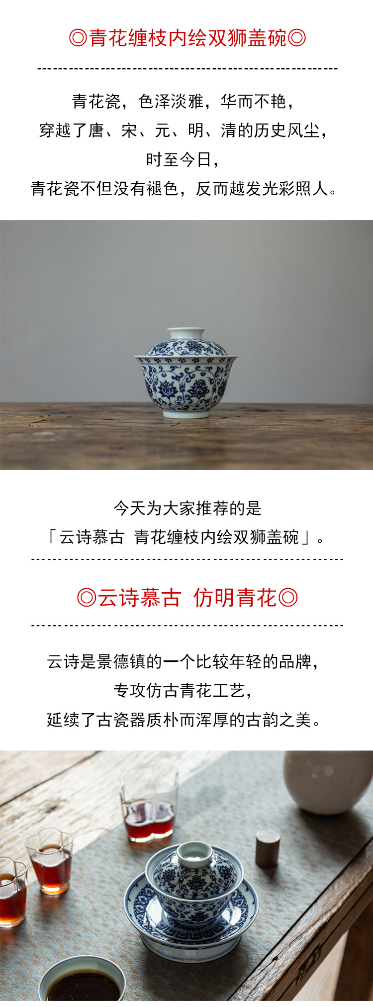 茶香记 云诗慕古 青花缠枝内绘双狮盖碗 青花手绘 传承古韵 寓意美好