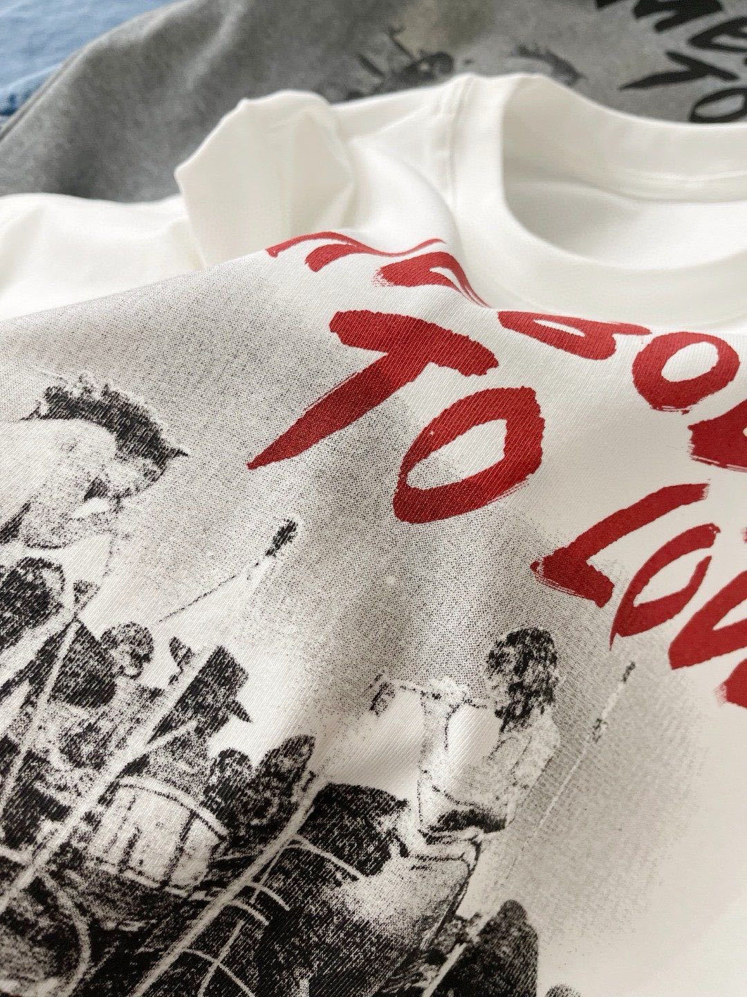 夏季新款【秦*同款印花字母休闲短袖】摇滚印花两色短袖T 不束缚透气性好