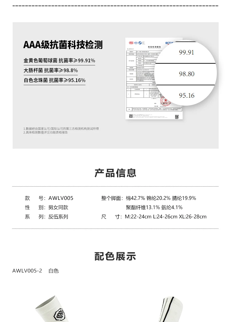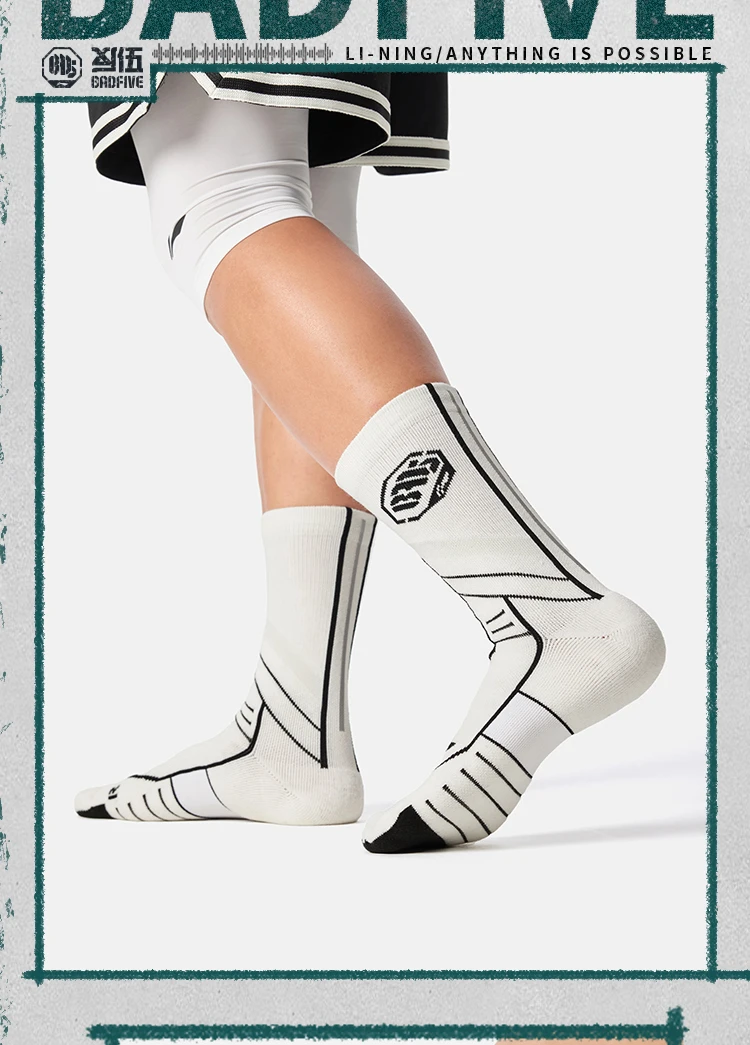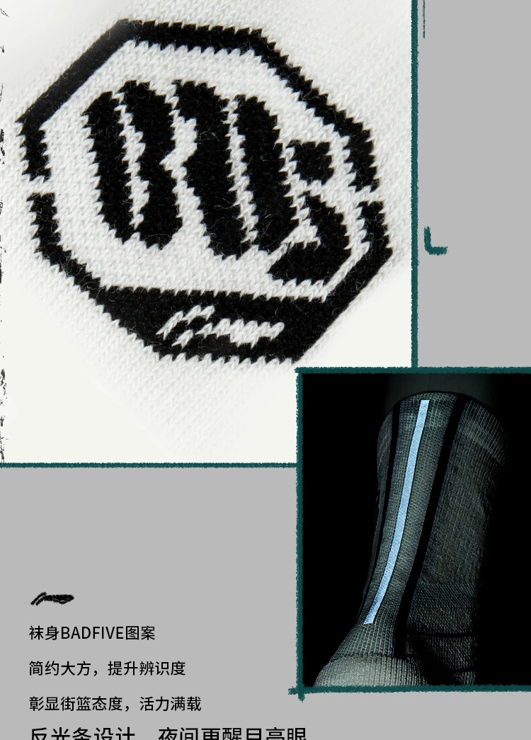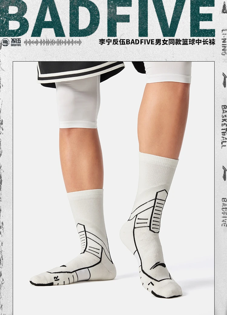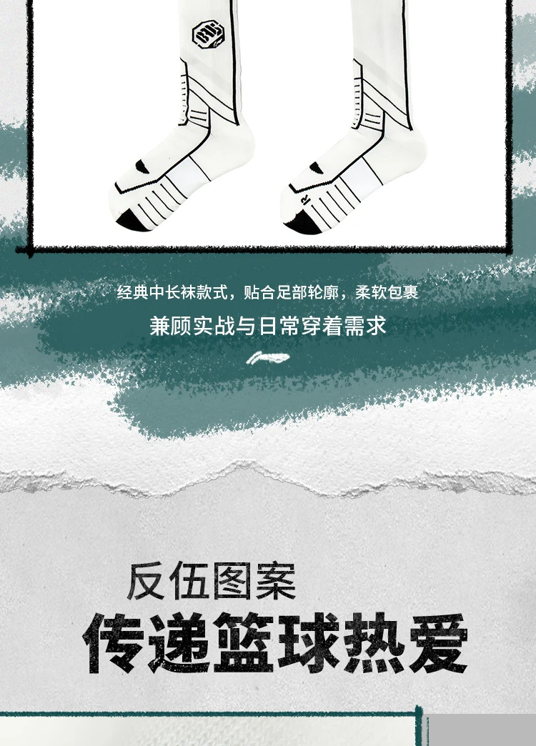 李宁反伍BADFIVE反光抗菌篮球中长袜AWLV005