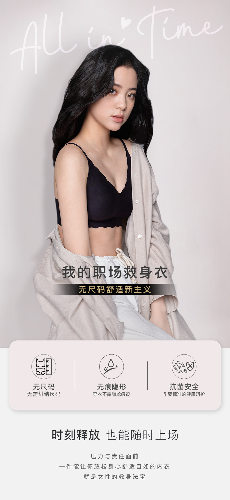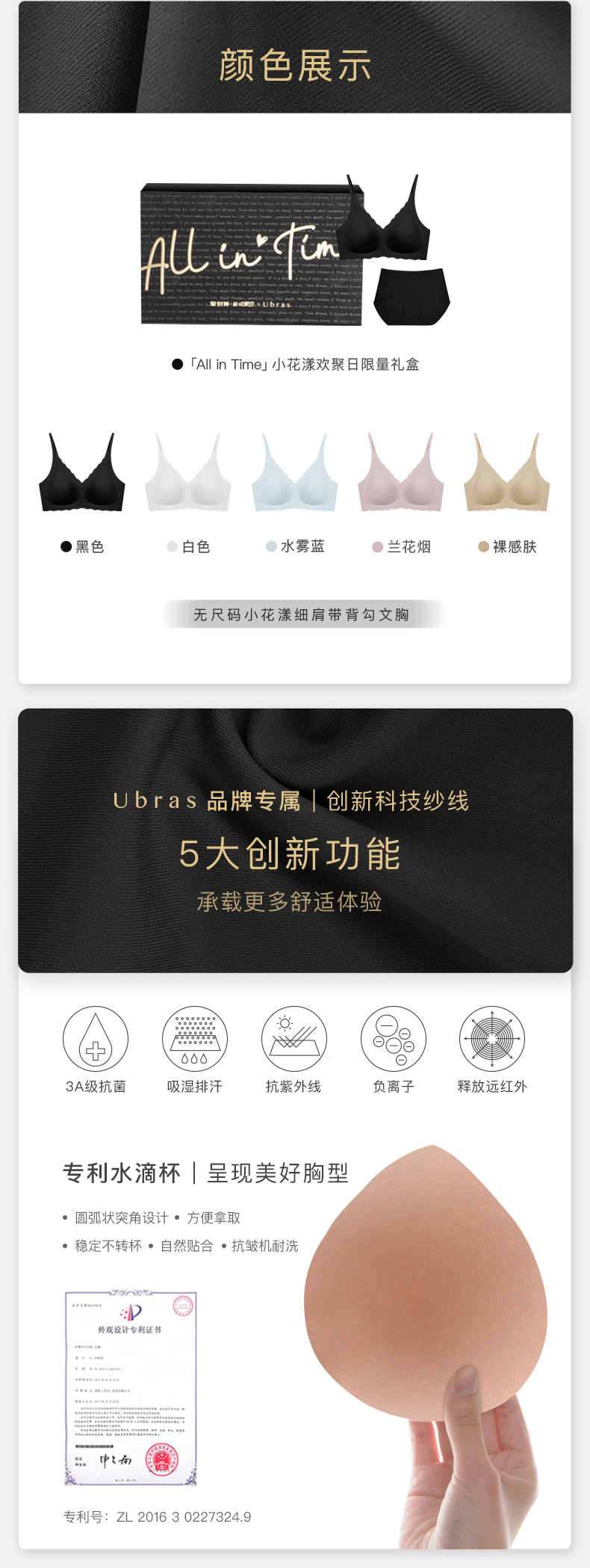 Ubras欧阳娜娜同款 All in Time无尺码小花漾礼盒细肩带背勾文胸
