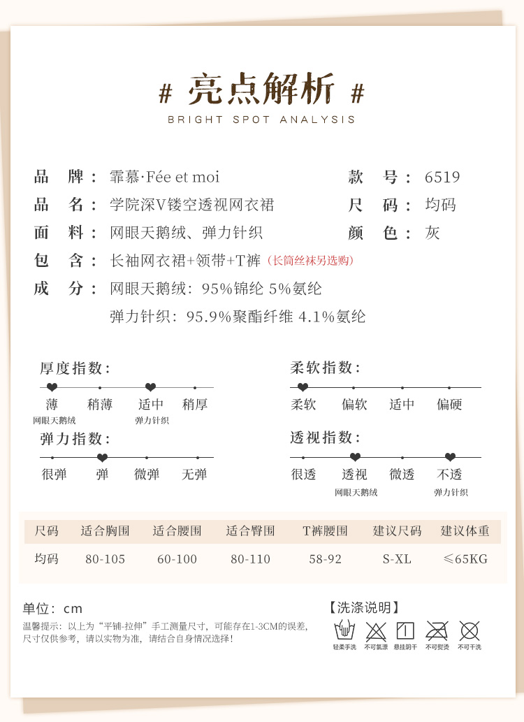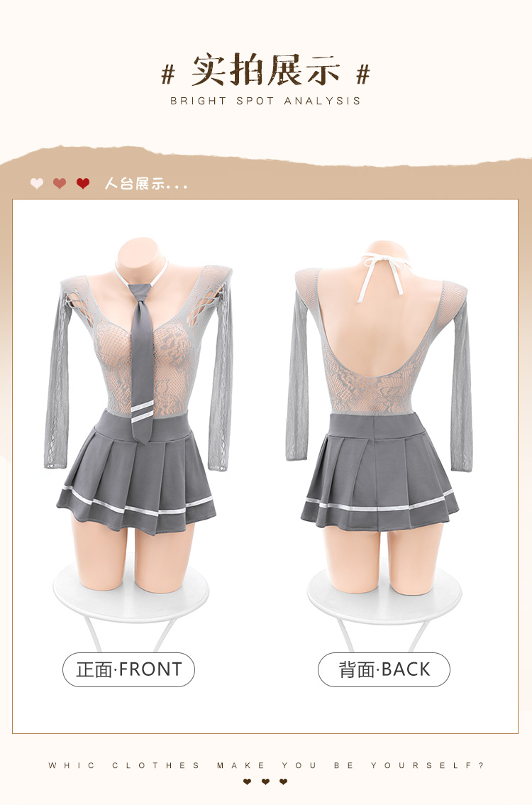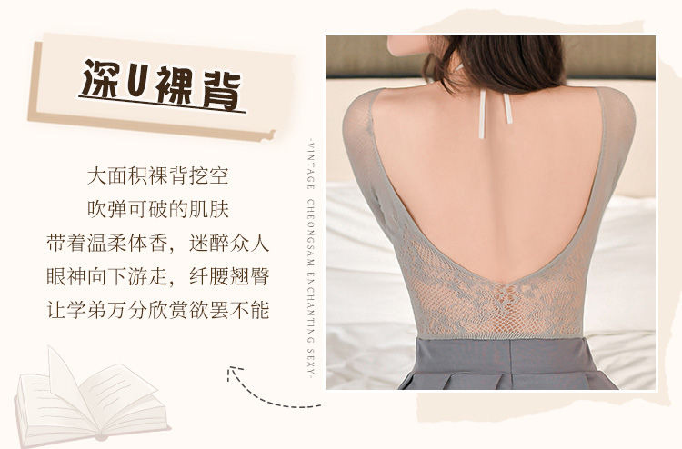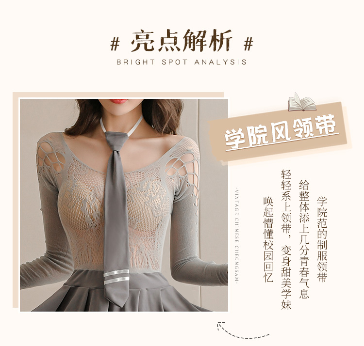 【情趣内衣】霏慕 学院深V镂空透视网衣裙6519