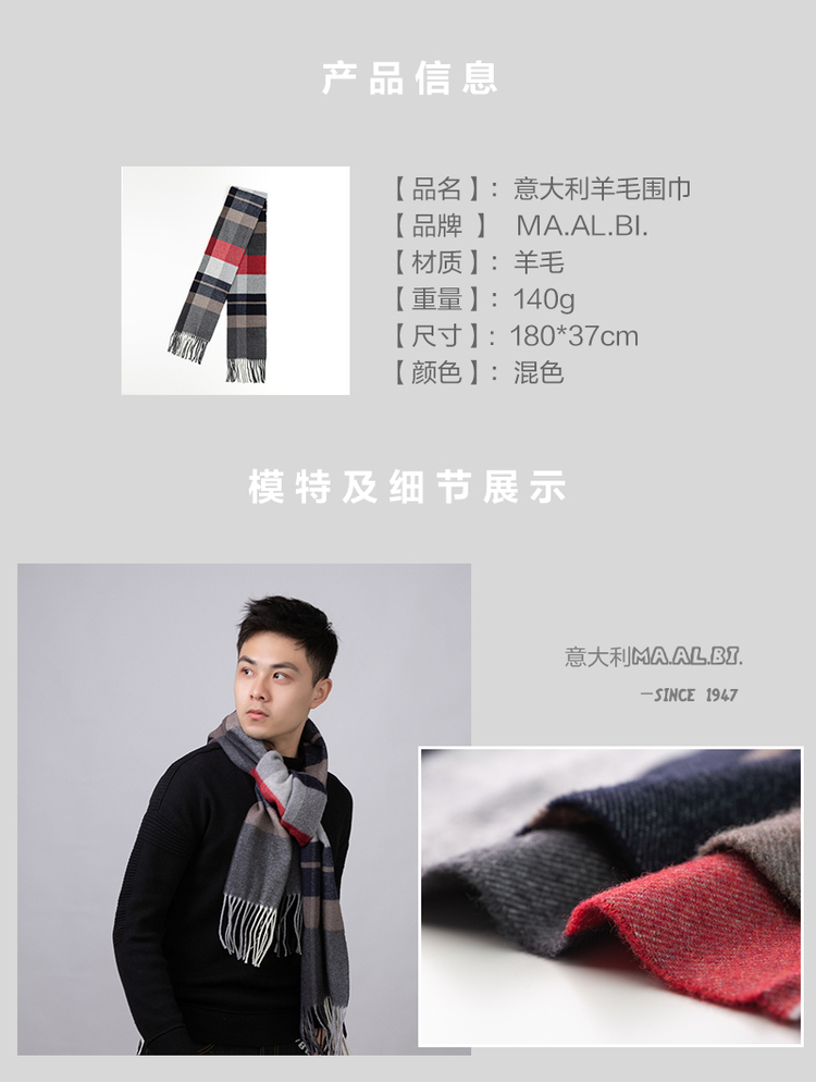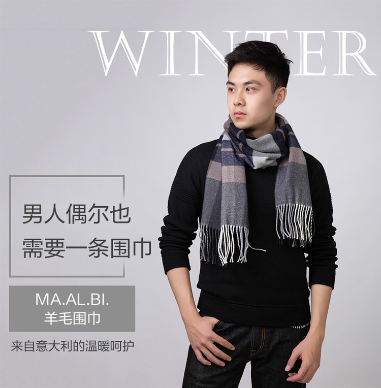 【MA.AL.BI.】意大利原产MA.AL.BI.羊毛围巾男士围巾
