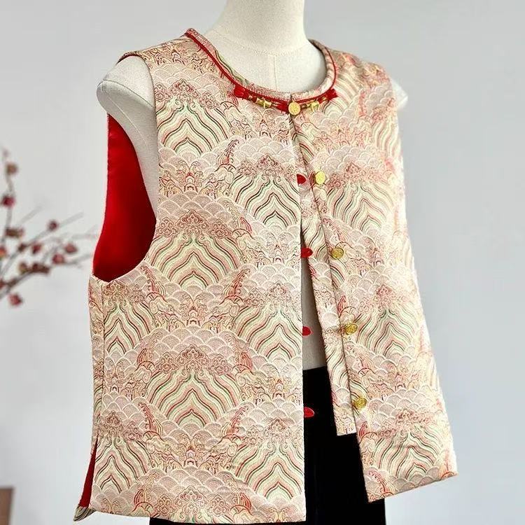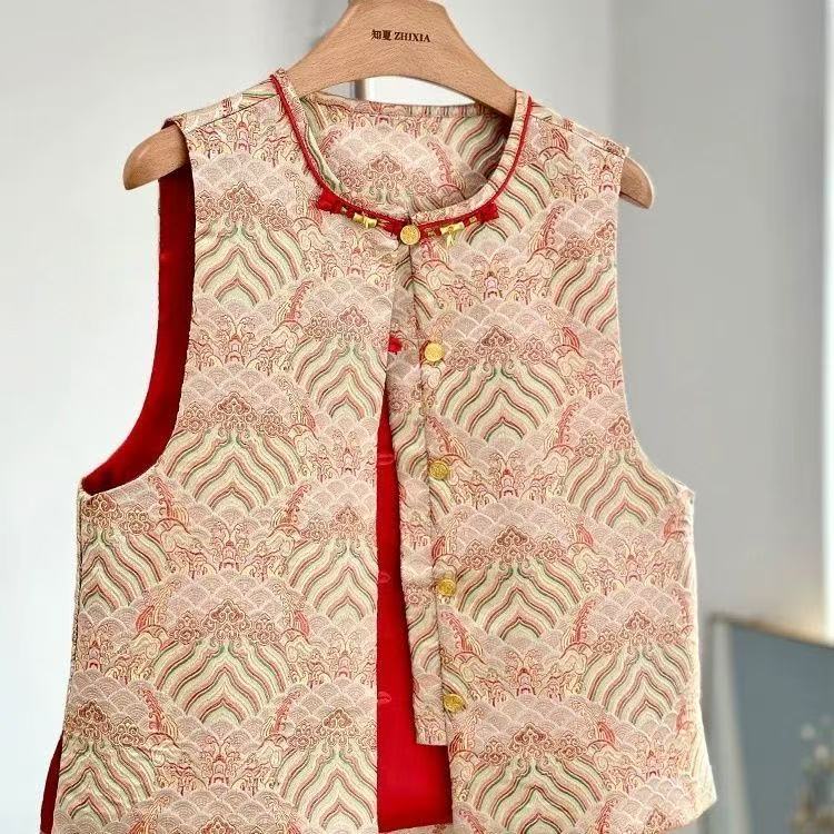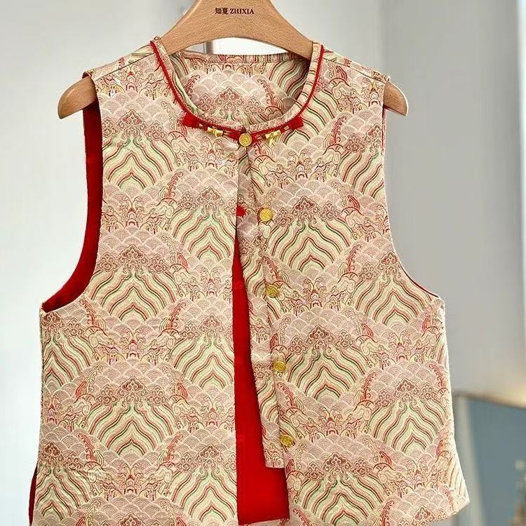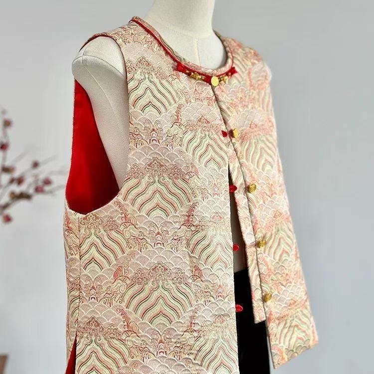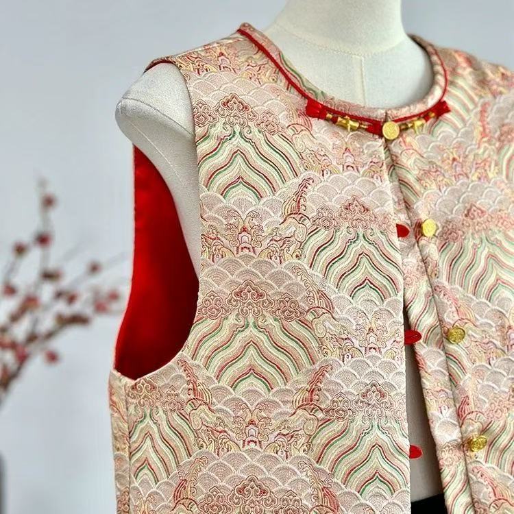 丁摩 新款织锦提花复古高端国潮上衣中式盘扣马甲女上衣马甲5ZF-022