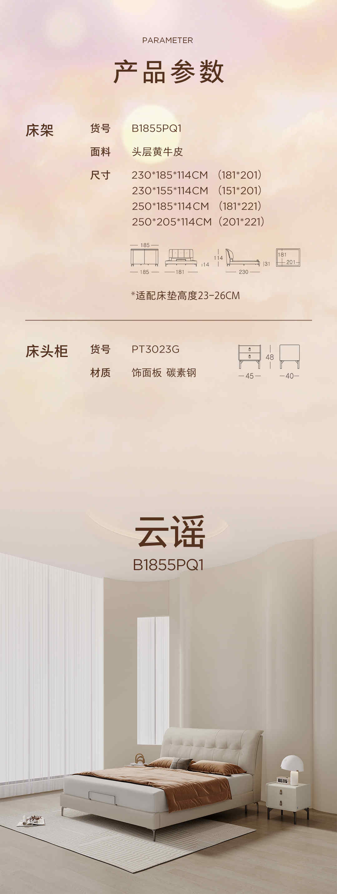 云谣皮床/90-B1855PQ1-床头柜PT3023G