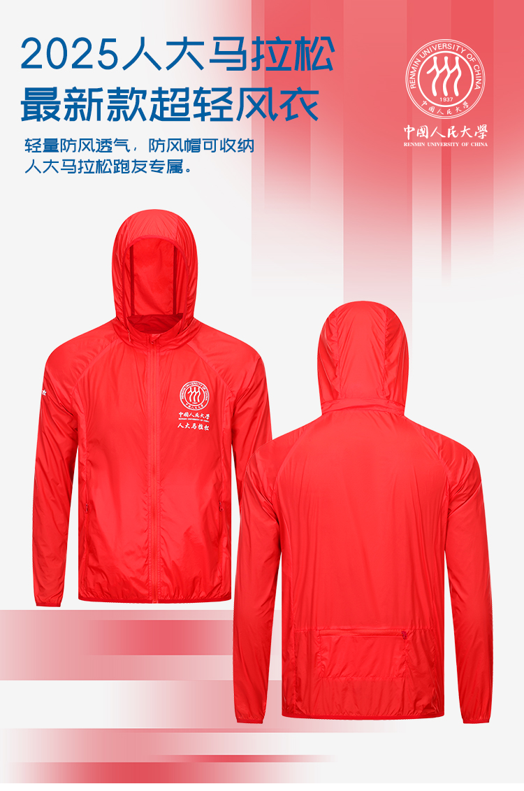 现货发售 2025人大马拉松最新款超轻风衣 定制类产品,非质量问题,不退不换,敬请谅解!