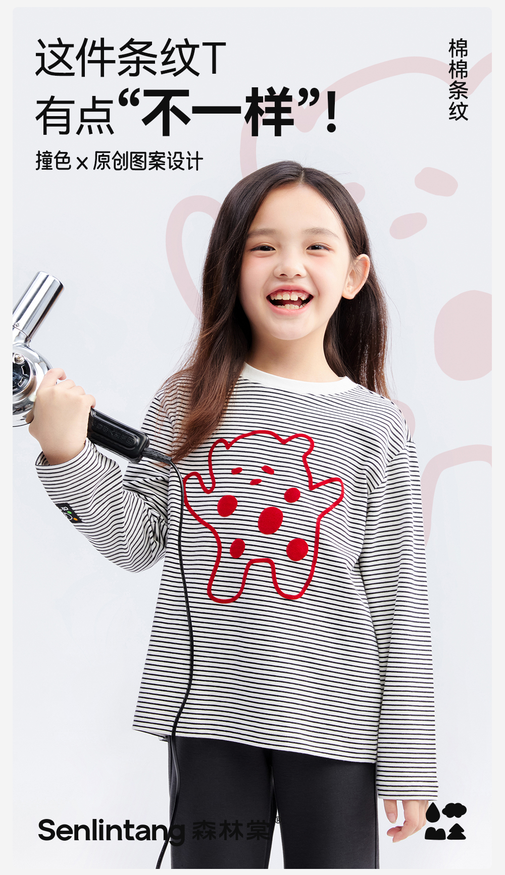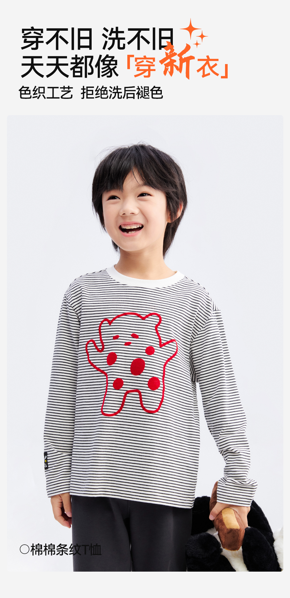 【小棠人条纹T恤】森林棠25秋款 小童棉感舒适亲肤高弹复古条纹长袖上衣60253276