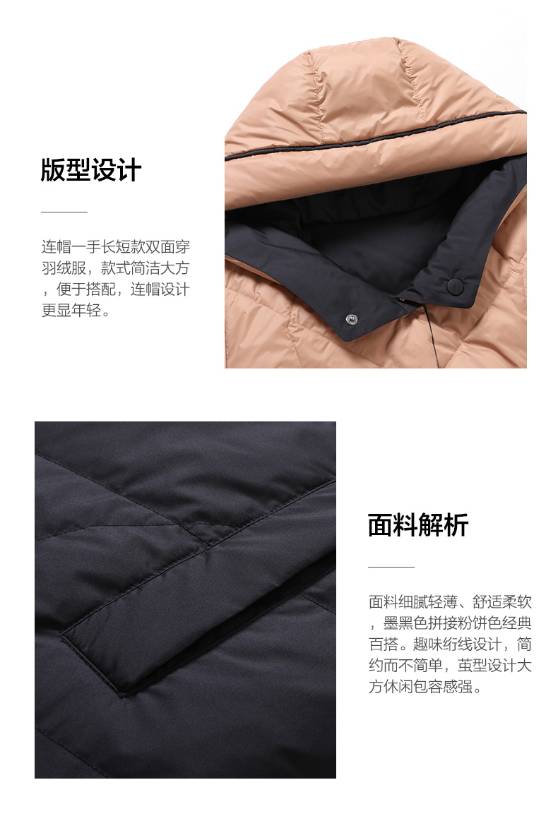乔万尼冬新款羽绒服90白鸭绒保暖简约拼色双面穿设计EI4T658