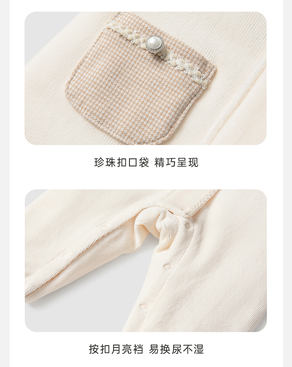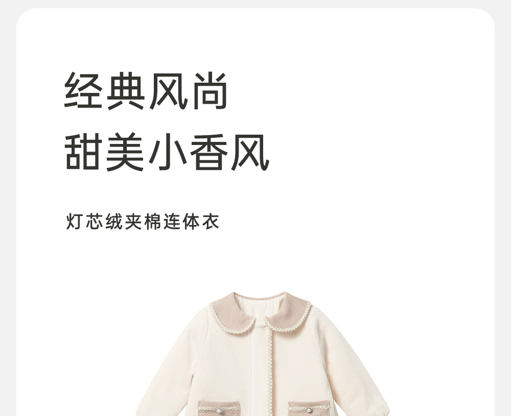 【商场同款】英氏婴儿夹棉连体衣秋冬灯芯绒婴儿衣服女童爬服新款