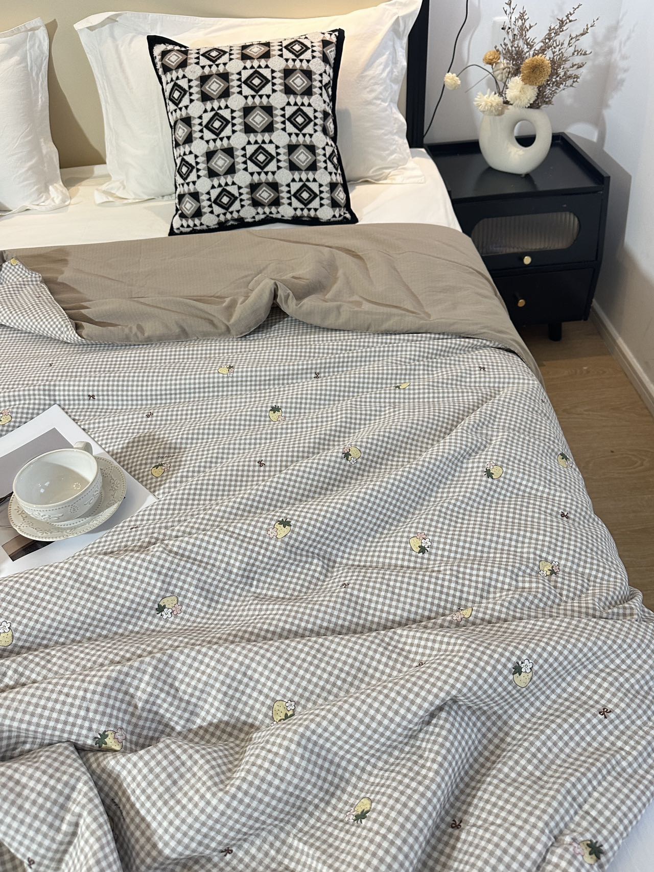 格子搭配草莓可爱又不失稳重〰