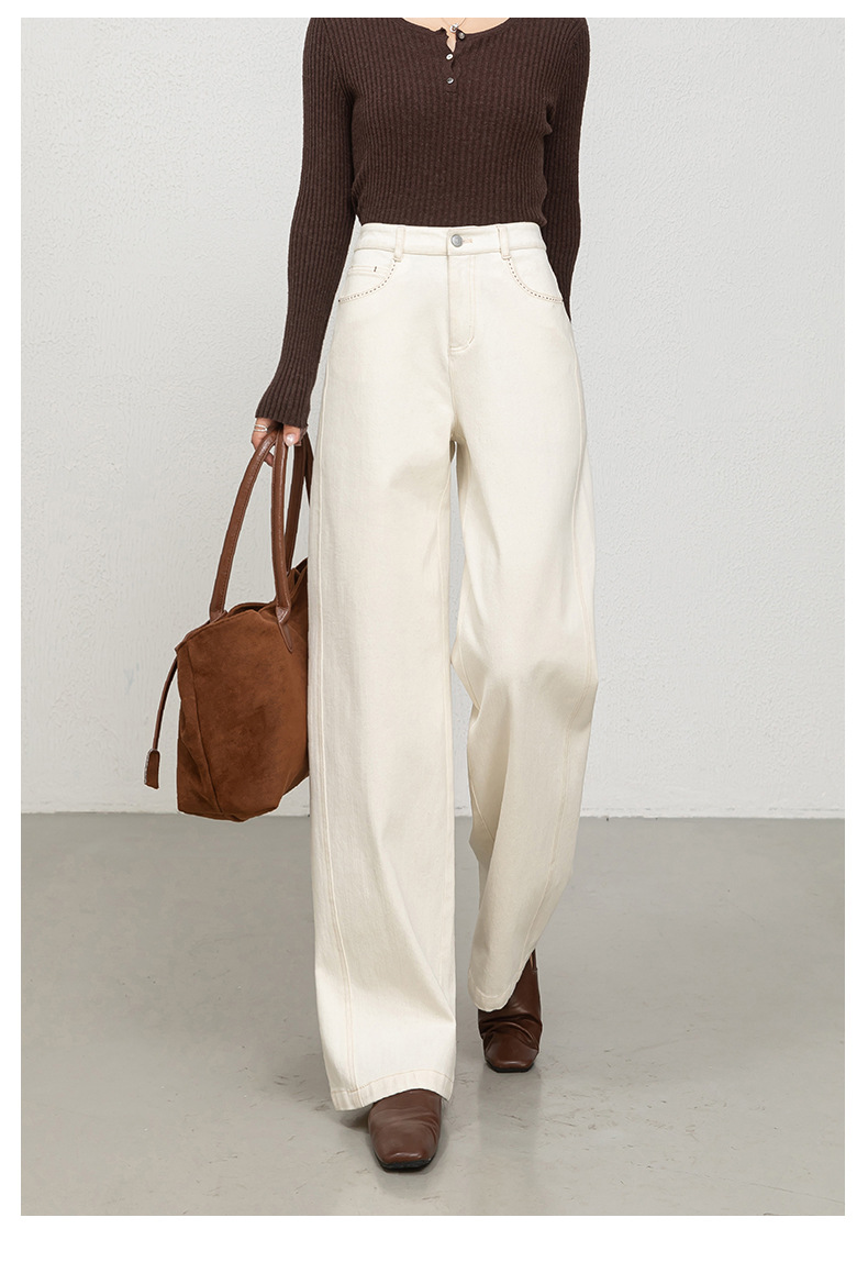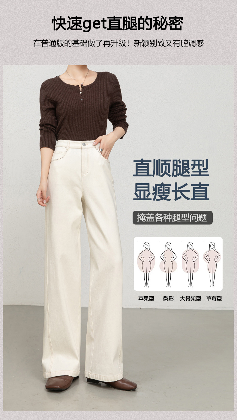 丁摩棉高腰显瘦直筒牛仔裤女新款宽松阔腿百搭裤子莱赛尔ALW25239