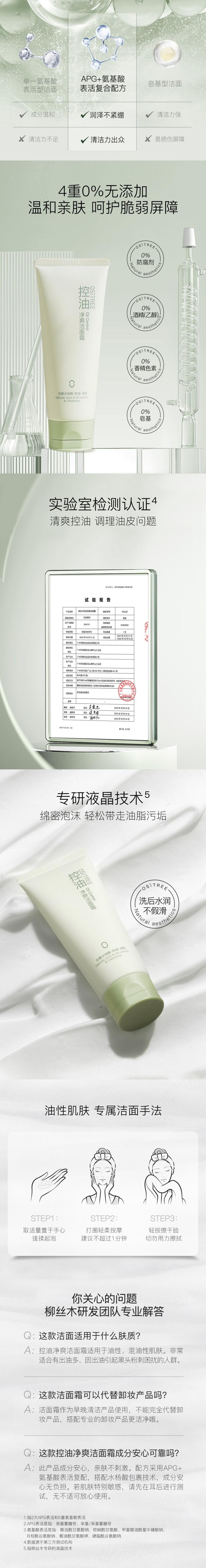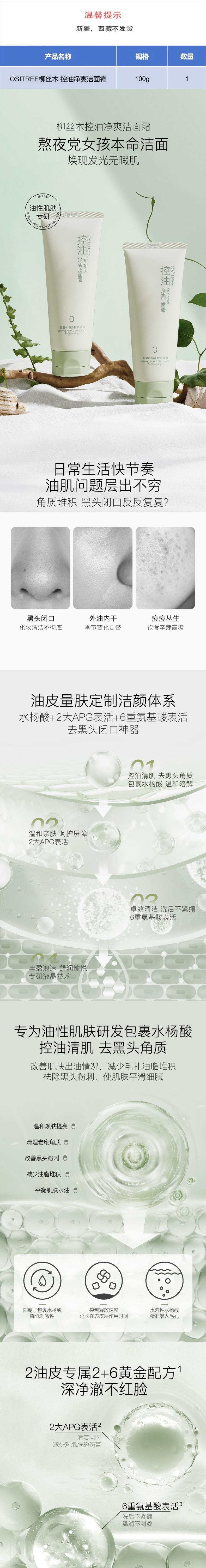 OSITREE柳丝木 控油净爽洁面霜100g LSM002