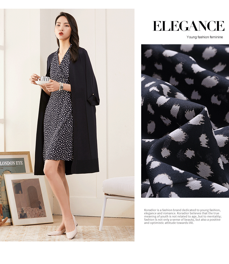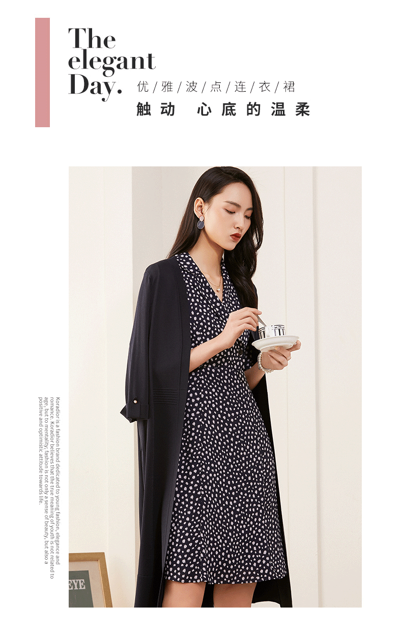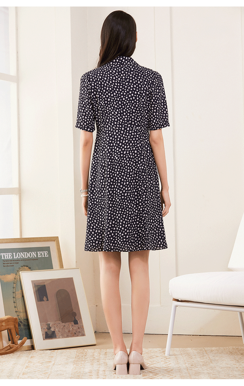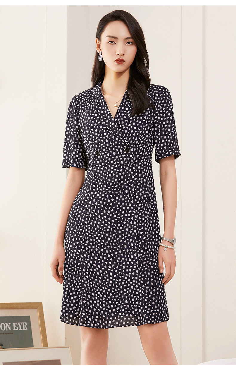 乔万尼V领修身收腰印花碎花连衣裙夏季新款中长裙子女ES1E025