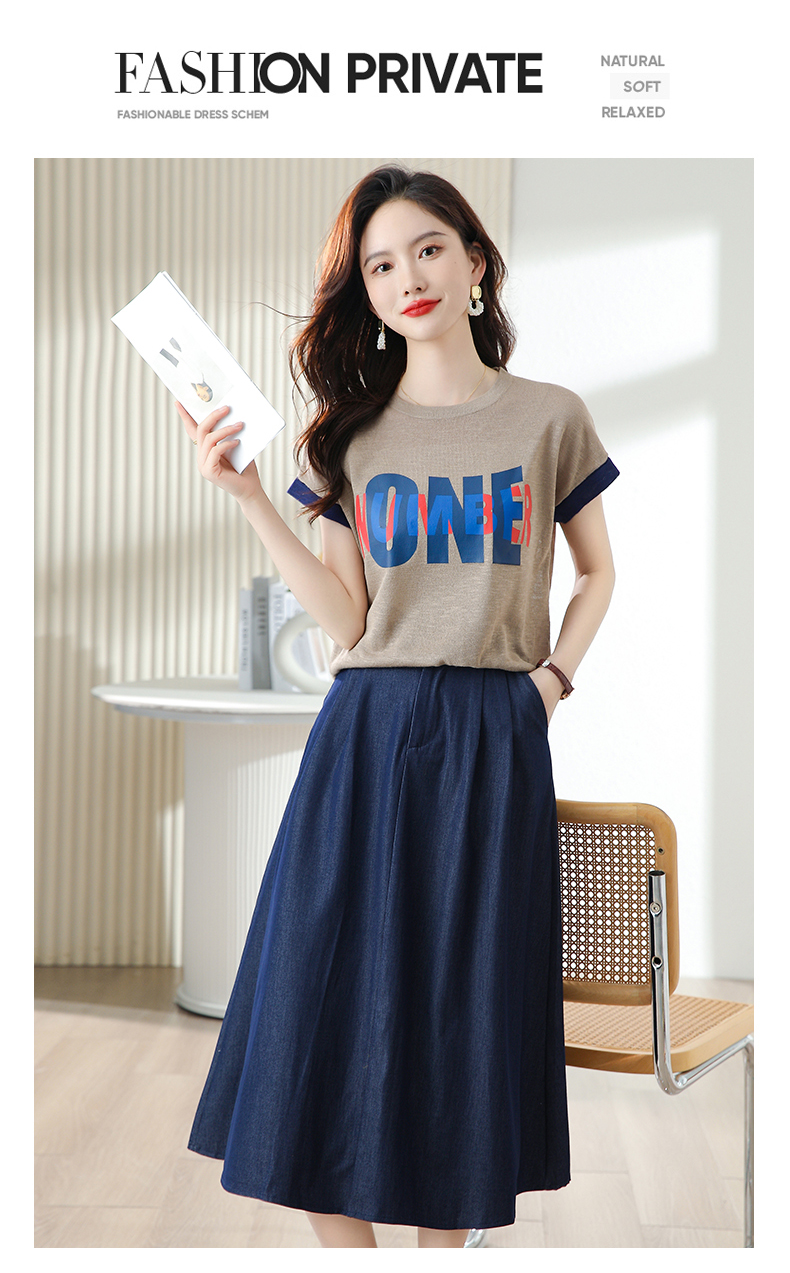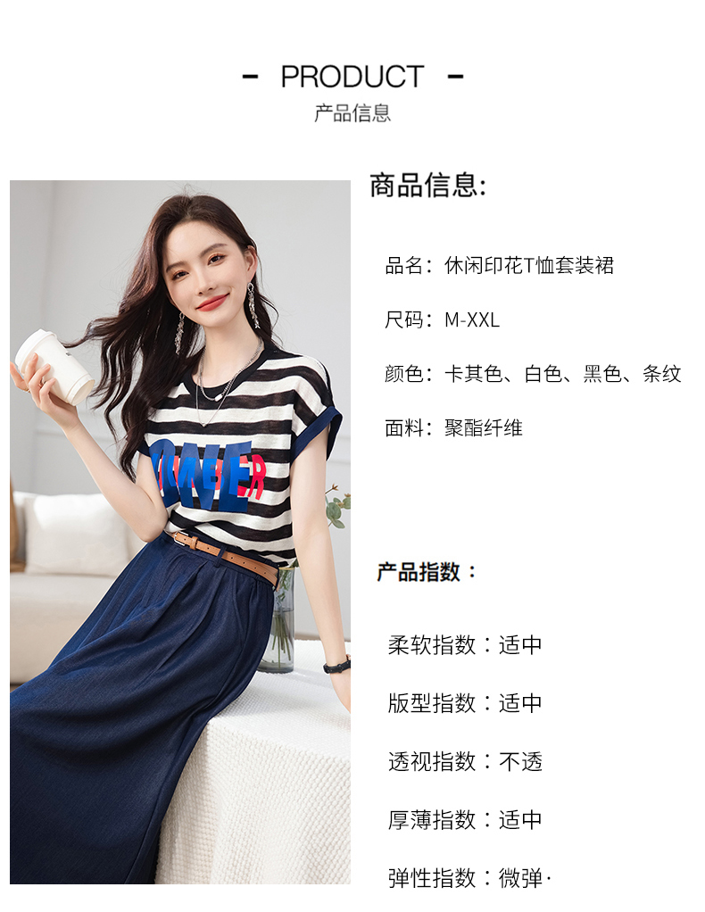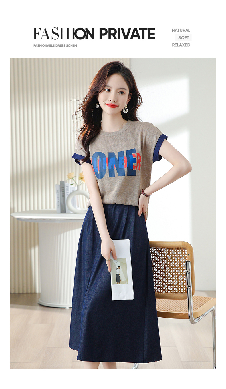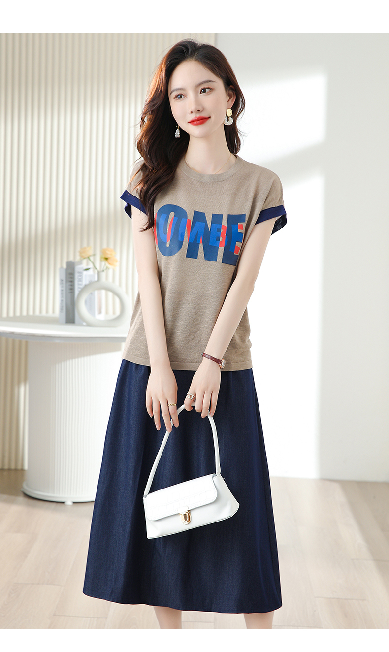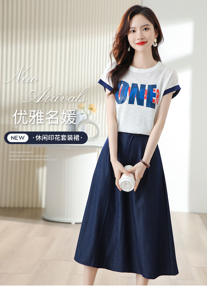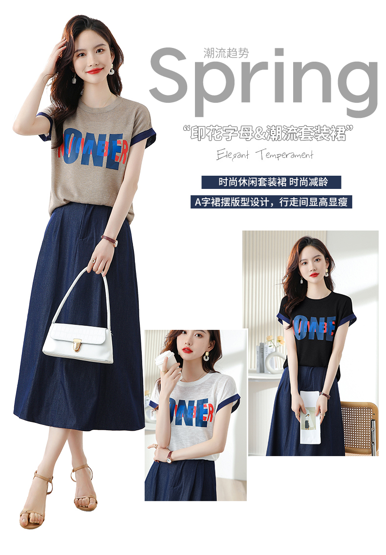 夏季新款,时尚休闲针织印花字母上衣+半身裙套装HR-ABS8303-1