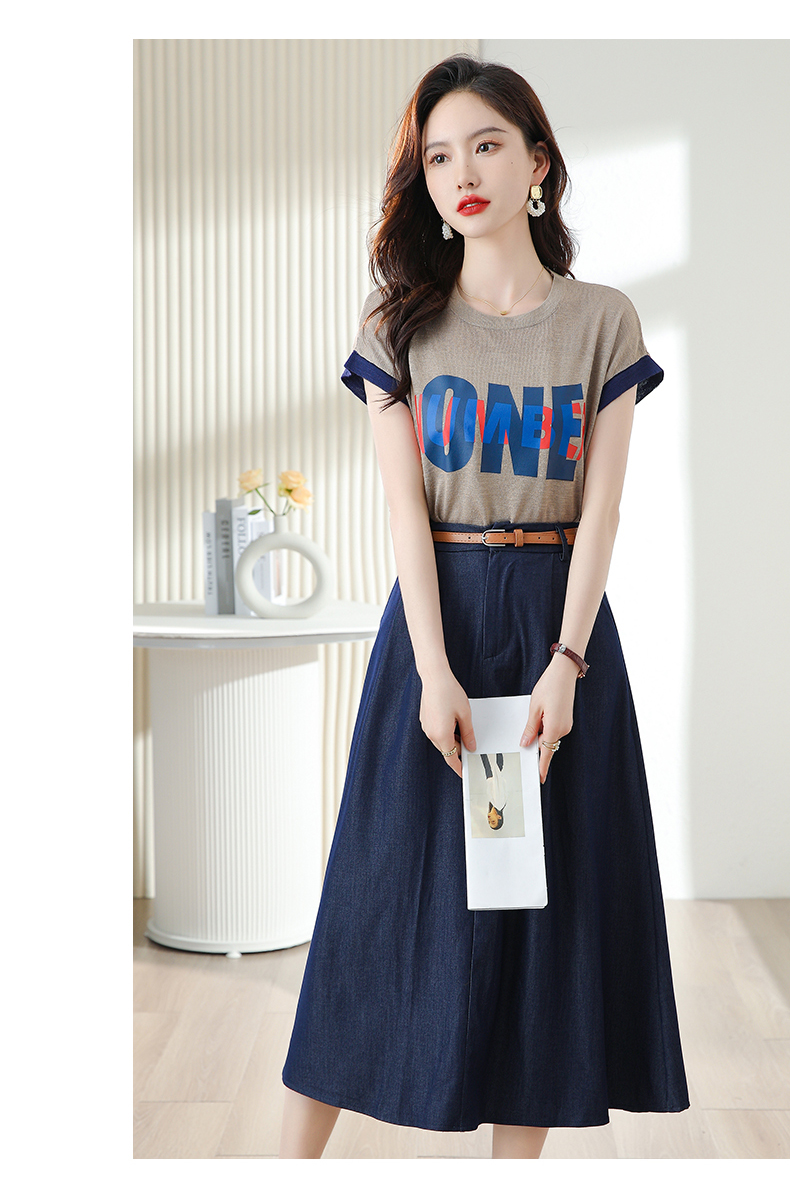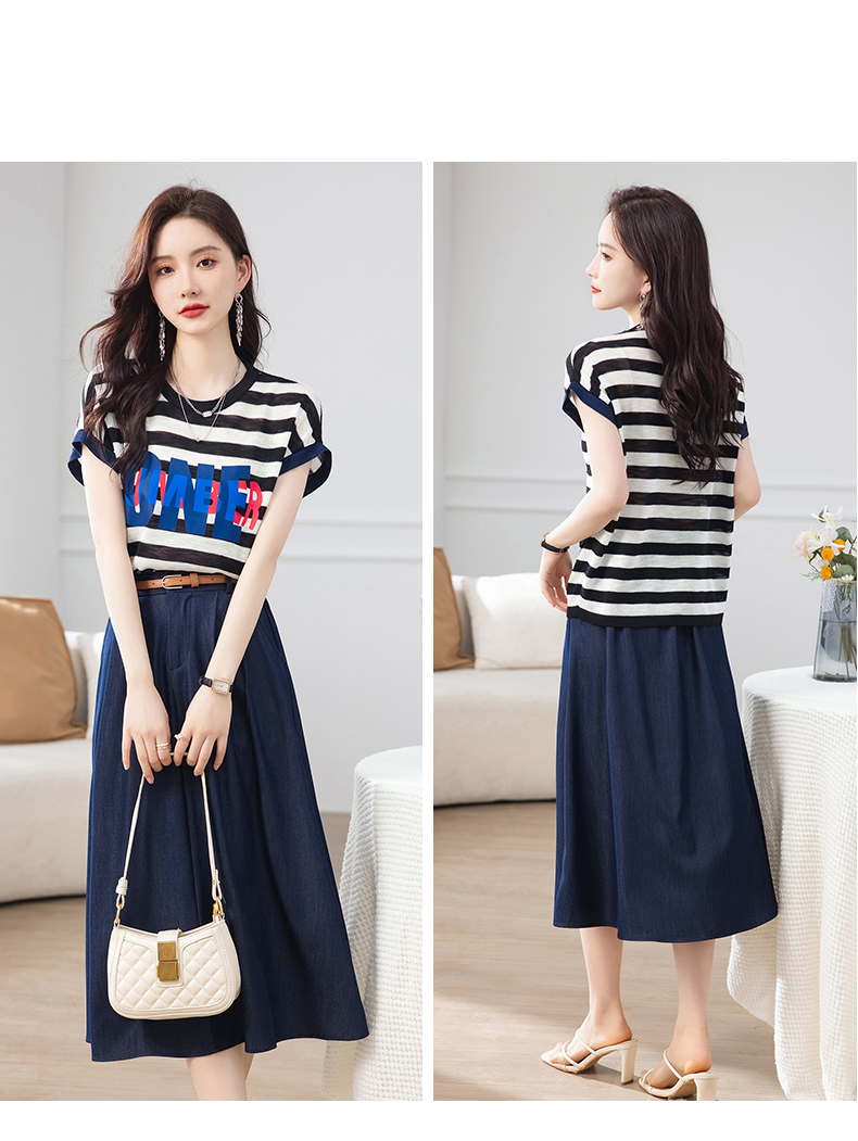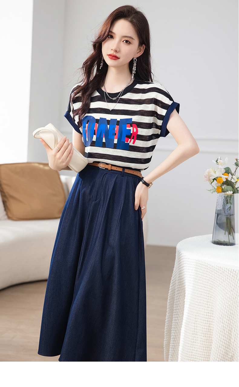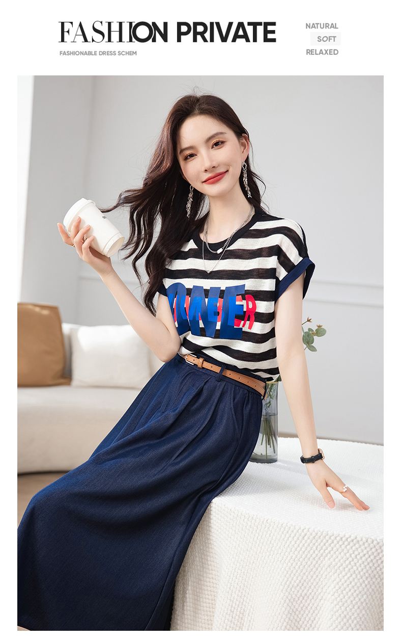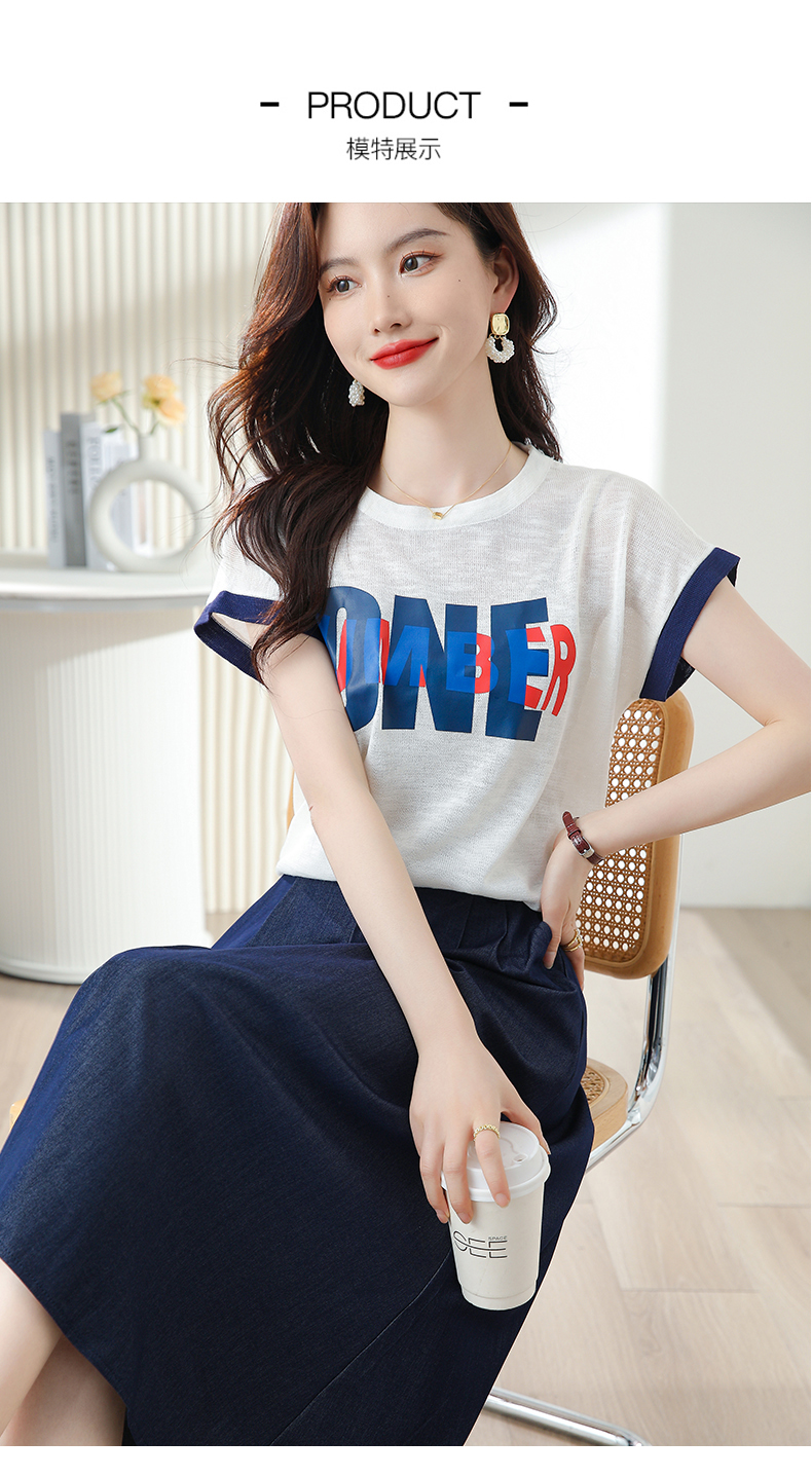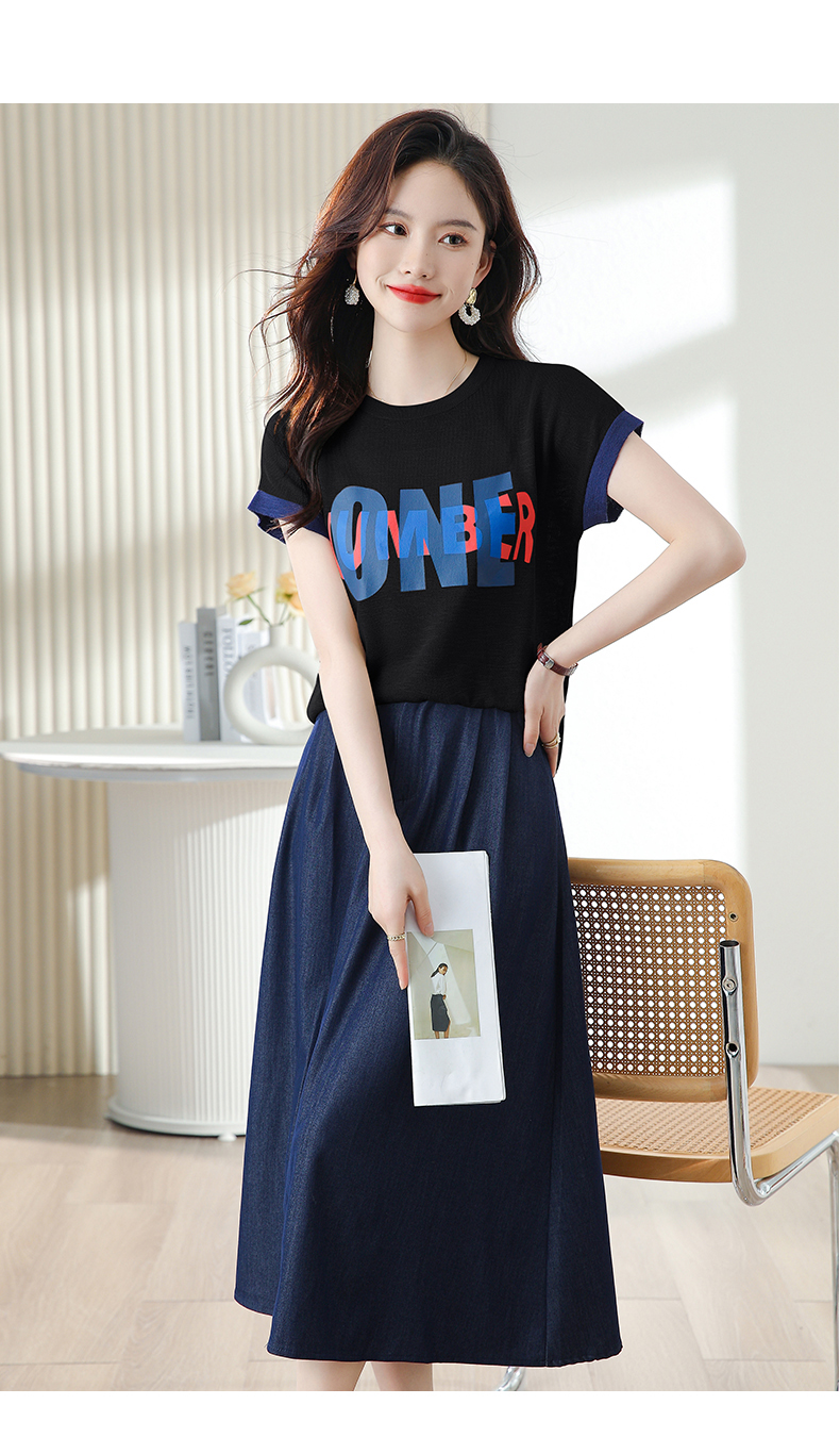 夏季新款,时尚休闲针织印花字母上衣+半身裙套装HR-ABS8303-1