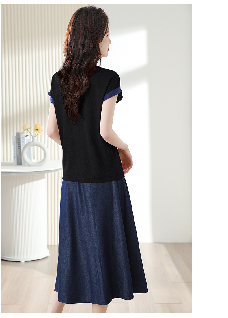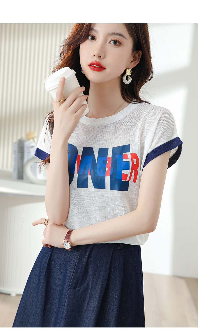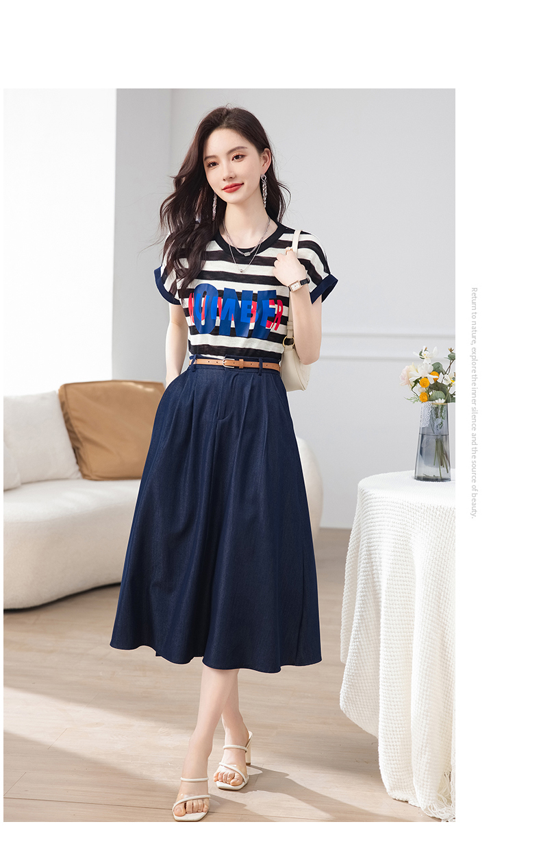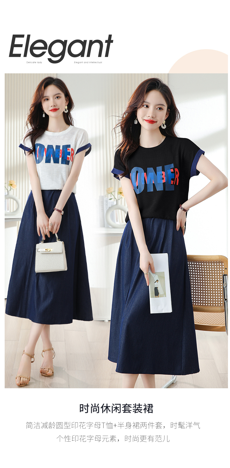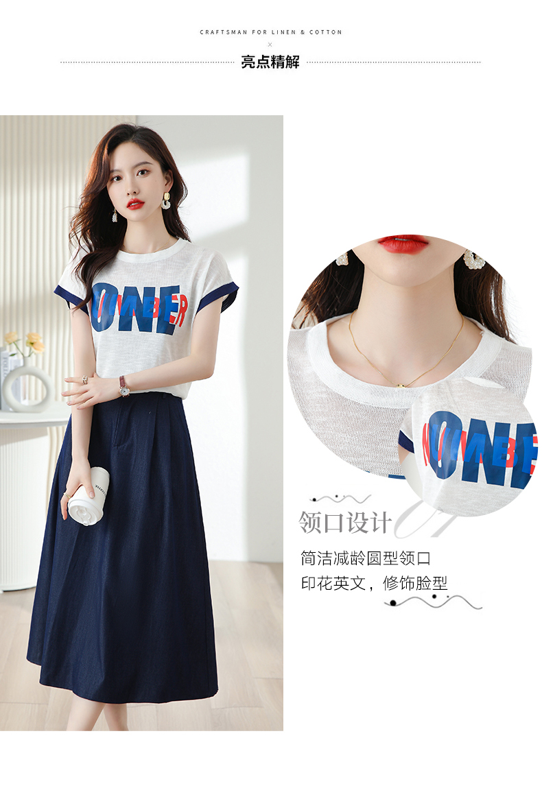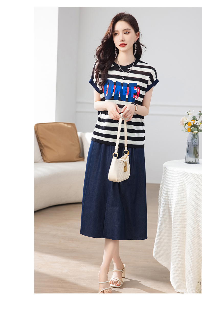 夏季新款,时尚休闲针织印花字母上衣+半身裙套装HR-ABS8303-1