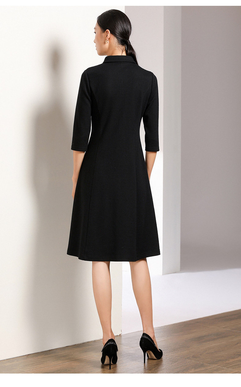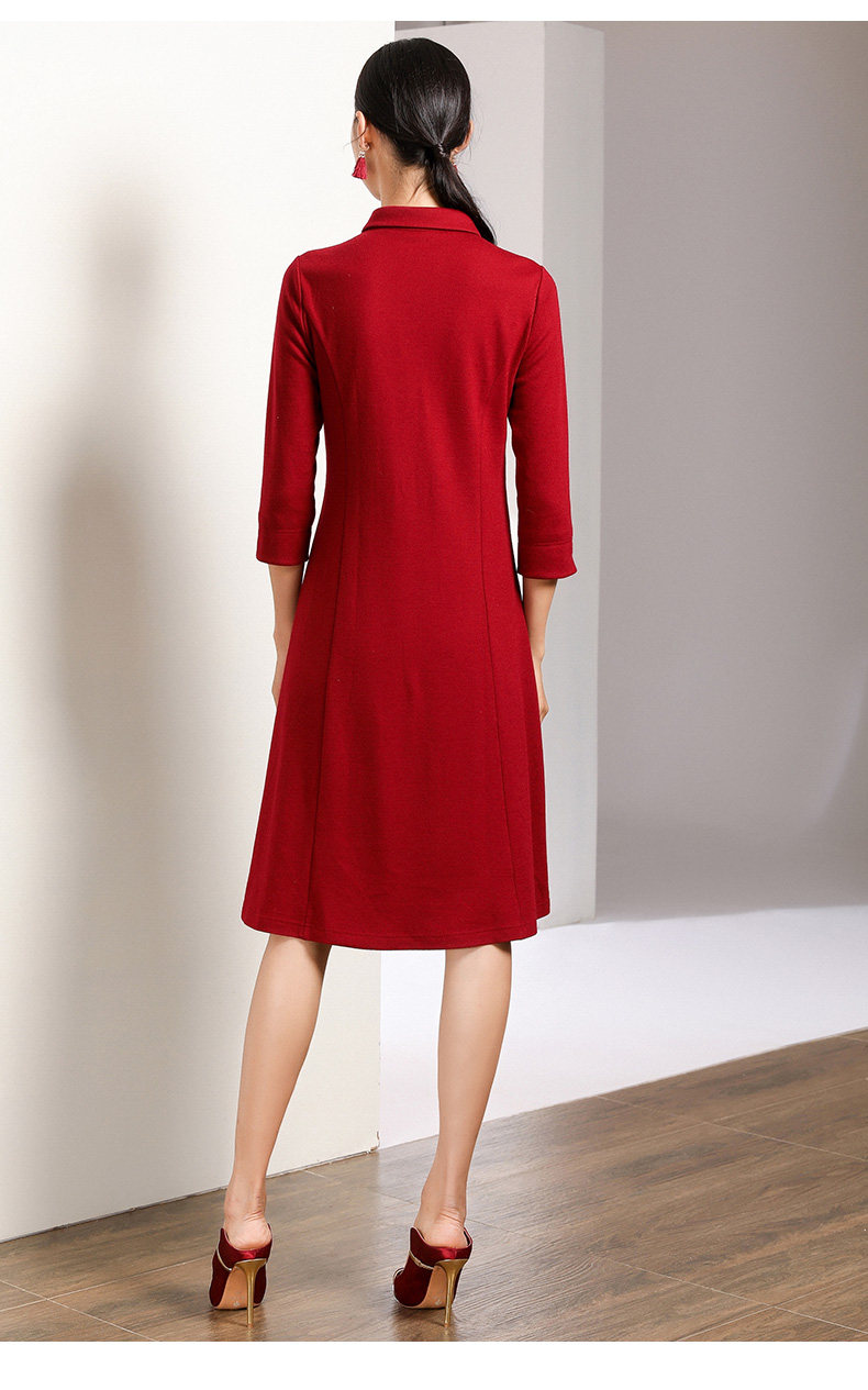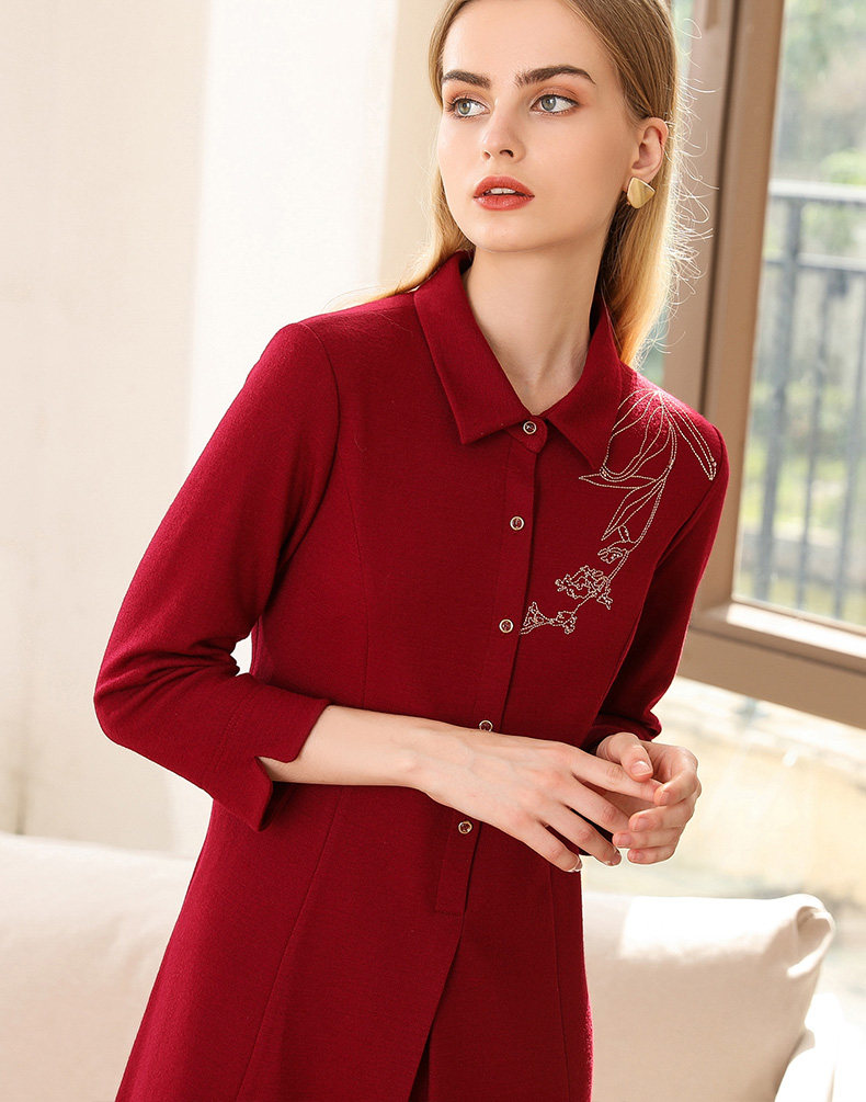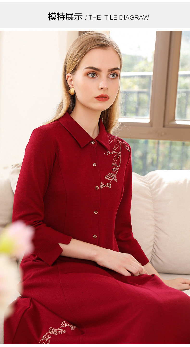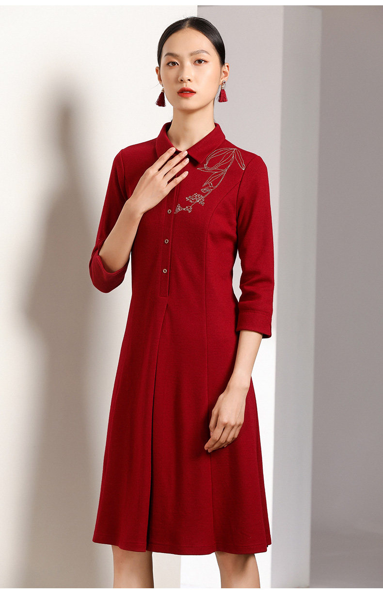 【两色可选】乔万尼秋装高腰修身显瘦气质刺绣长袖连衣裙中长款EN3E378