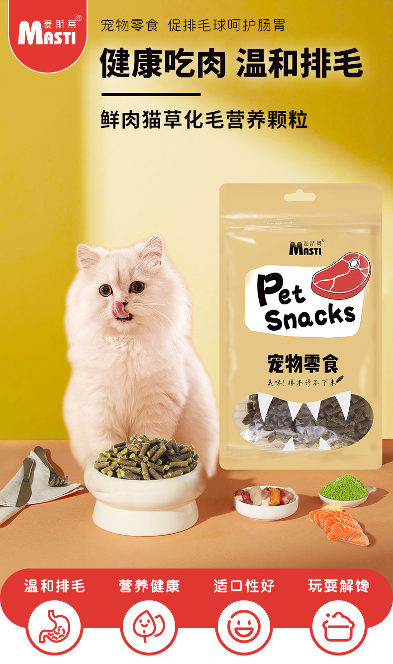 麦斯蒂猫草化毛颗粒100g猫咪零食 排毛球