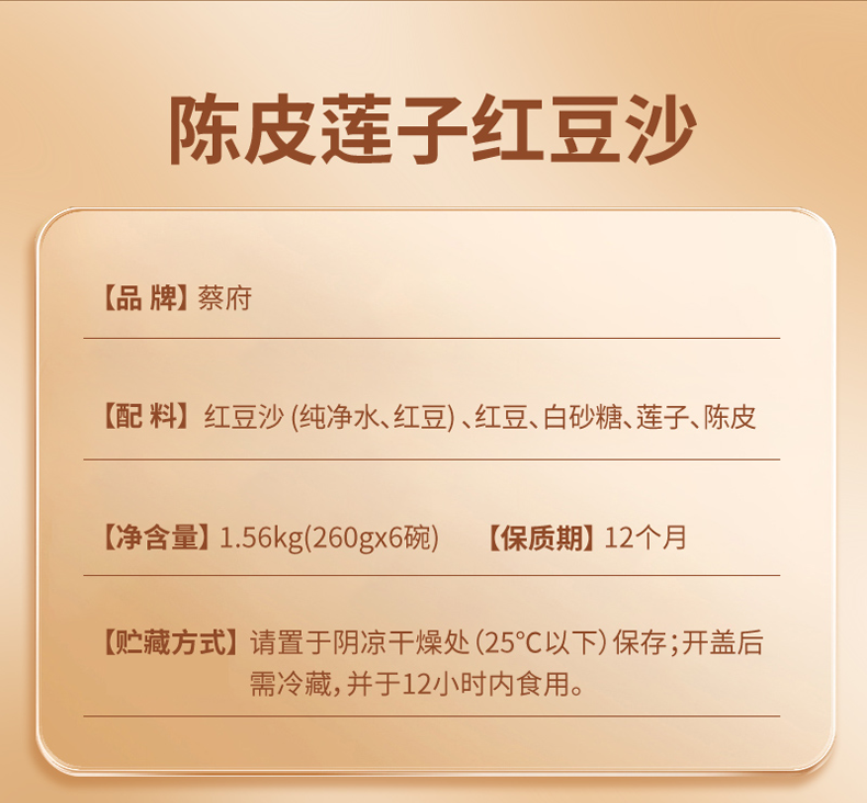 【女神节】蔡府 陈皮莲子红豆沙 260g*6