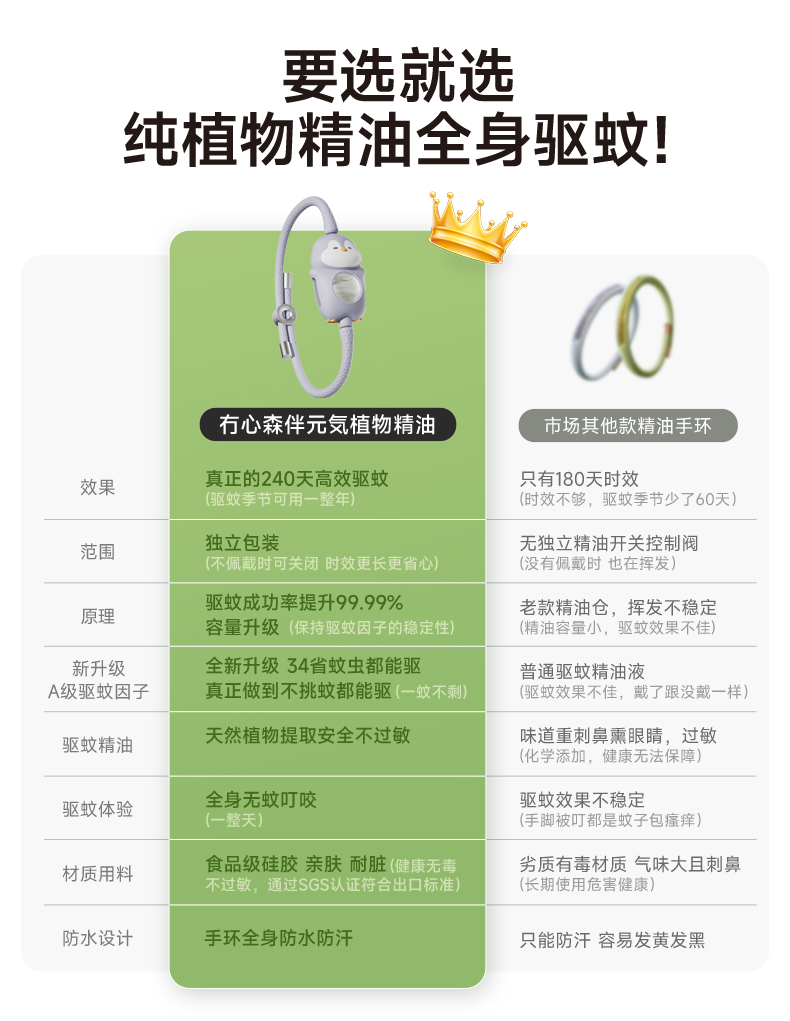 心选丨【驱蚊效果看得见】冇心 森伴精油驱蚊手环 全新升级 时长更久 范围更大 纯植物萃取精油 全身防水防汗 随身可佩带