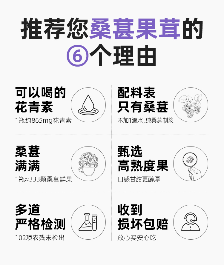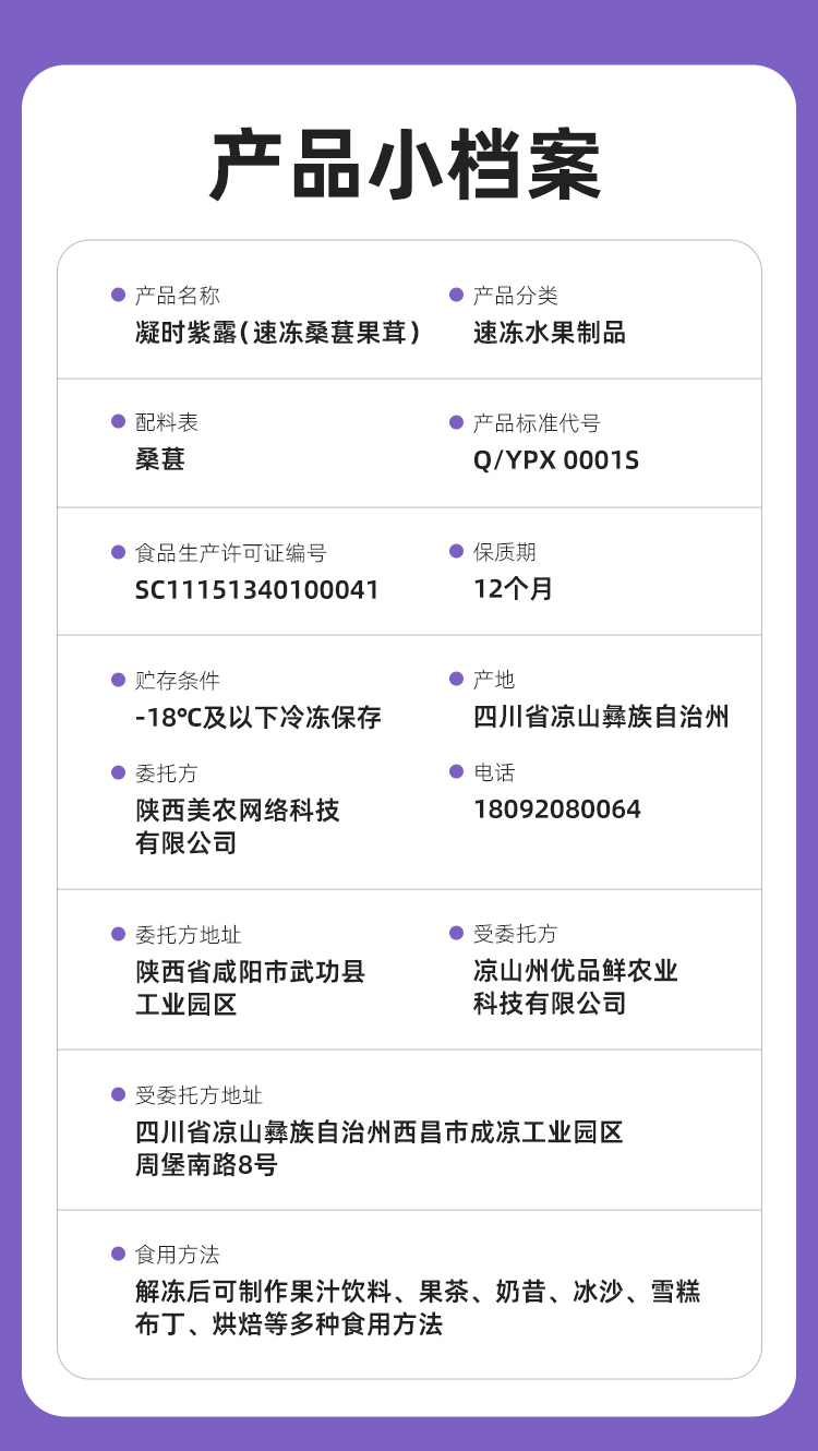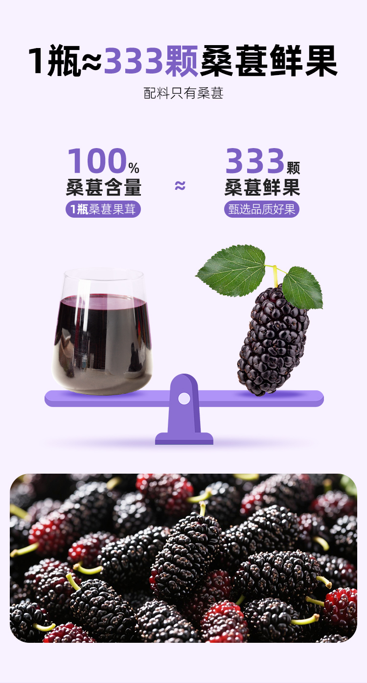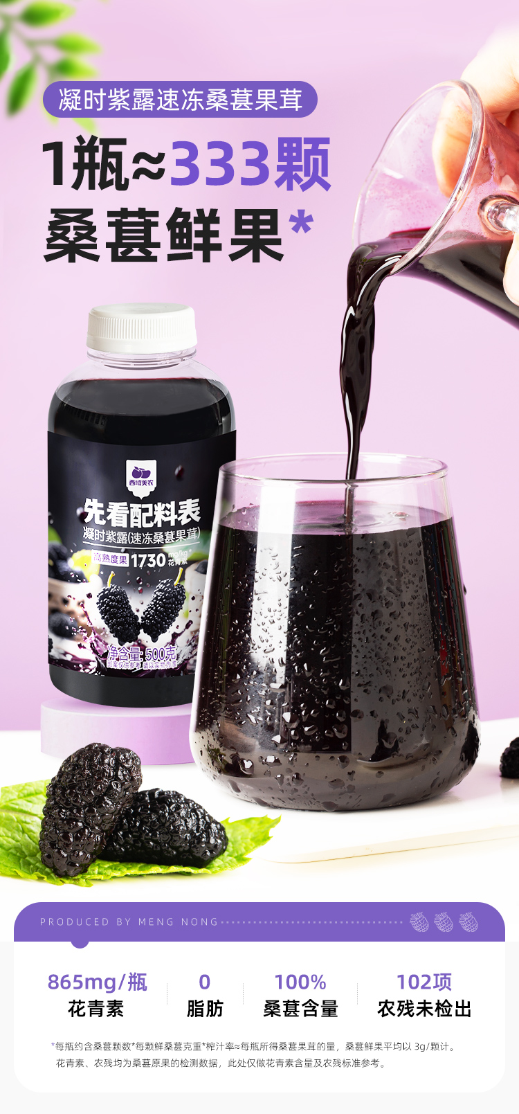凝时紫露(速冻桑葚果茸) 桑葚汁 鲜果急冻锁鲜+物理压榨 自然香甜 500g*4瓶