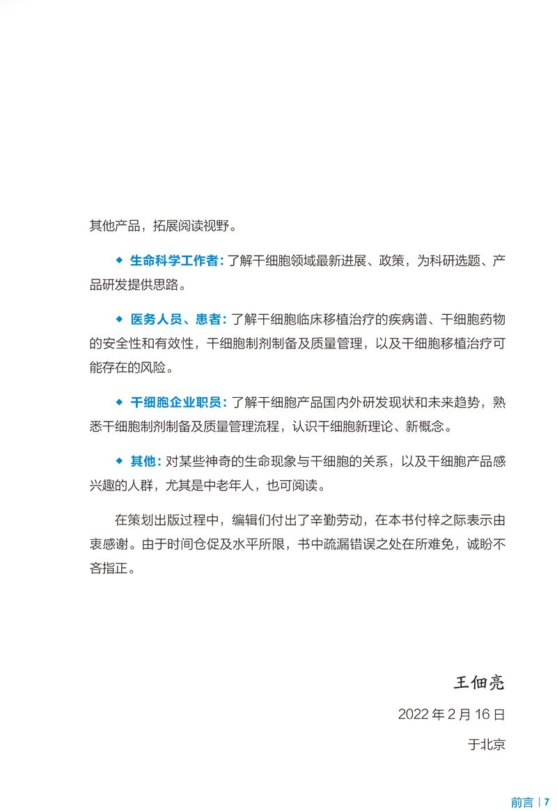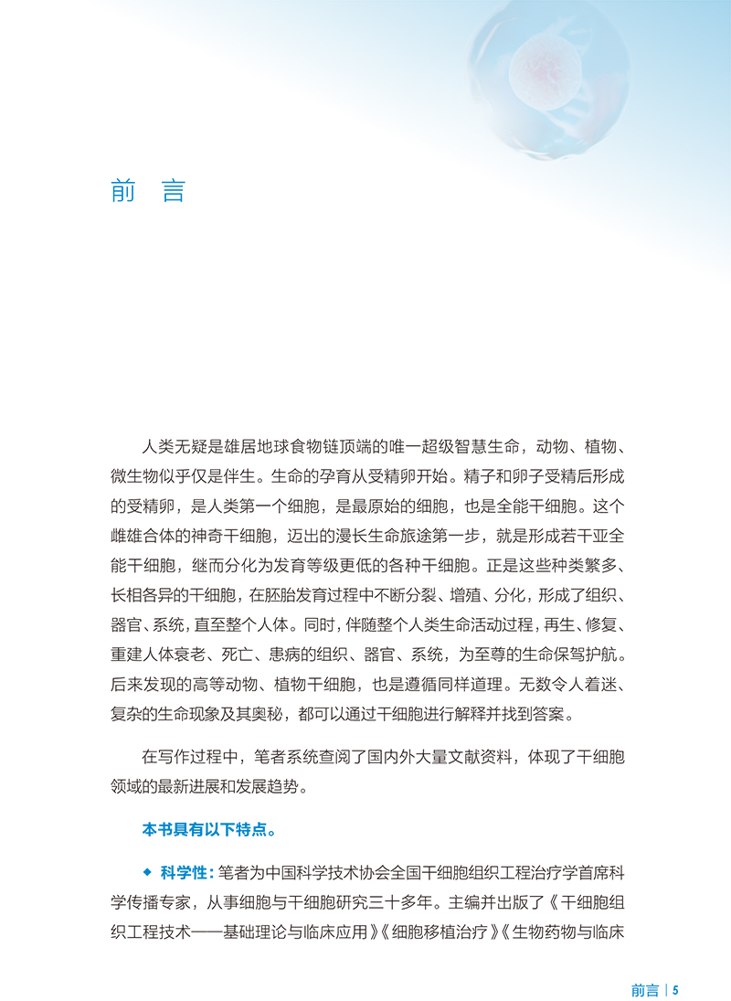 ?科学性:笔者为中国科学技术协会全国干细胞组织工程治疗学首席科学传播专家,从事细胞与干细胞研究三十多年。主编并出版了《干细胞组织工程技术——基础理论与临床应用》《细胞移植治疗》《生物药物与临床应用》等干细胞领域科学专著。撰写并出版了《细胞与干细胞:神奇的生命科学》《细胞与干细胞:临床治疗的革命》《干细胞:疾病衰老美容》等科普图书,并获得了多项国内国际图书大奖。长期的干细胞一线研究和出书经历,保证了作品的科学性。