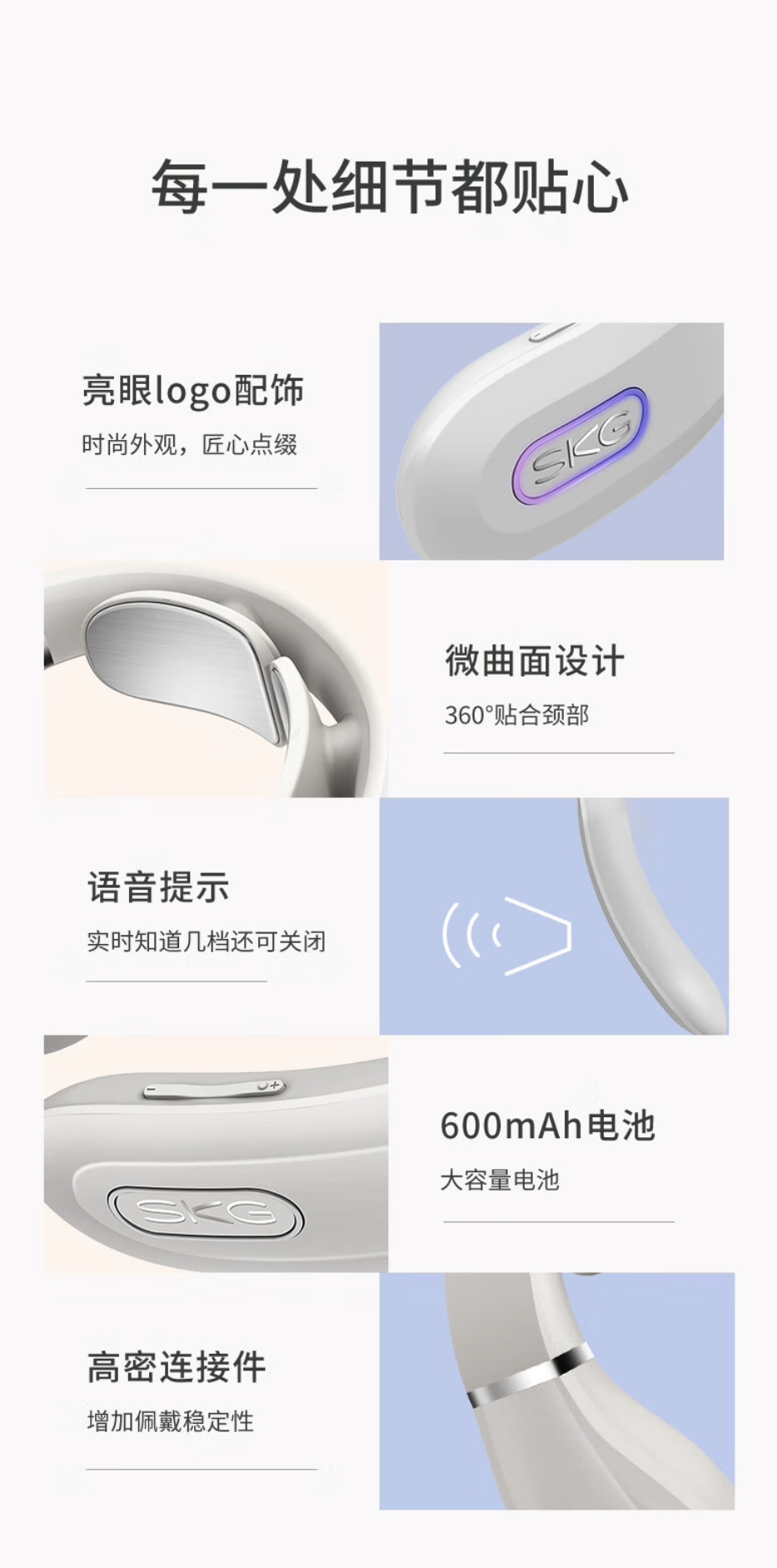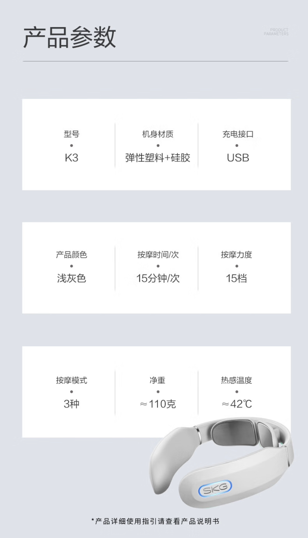 【母亲节礼物】SKG 颈椎按摩器 时尚颈椎肩颈按摩仪 颈椎经络电脉冲护颈仪 K3浅灰色