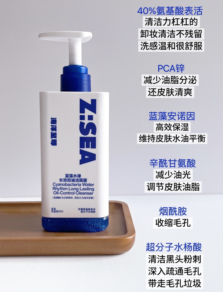 海洋至尊蓝藻控油套盒 核心成分烟酰胺+肌氨酸 肤感舒适温和,还能提亮肌肤,让神色更明朗 。