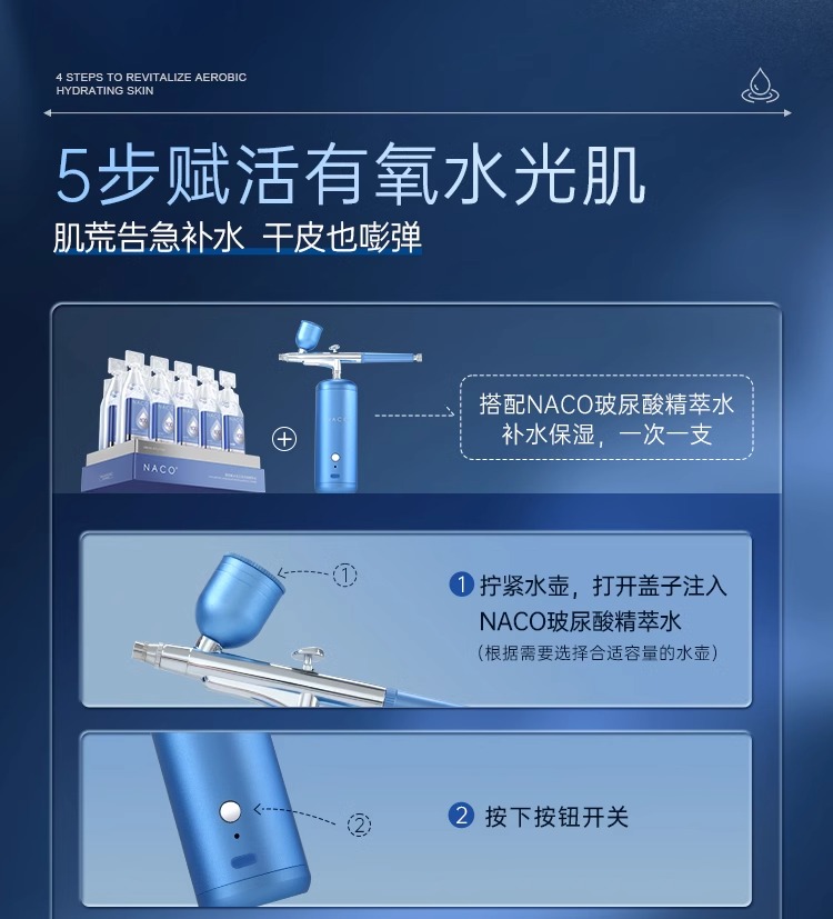 NACO高压注氧仪纳米喷雾补水仪家用补水器便携式手持水氧仪导入仪
