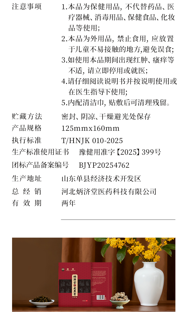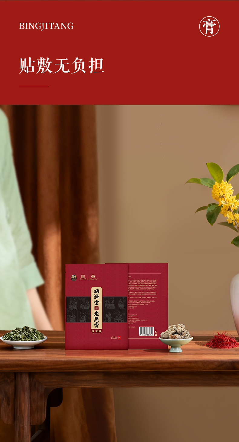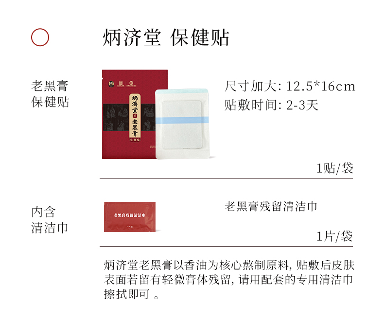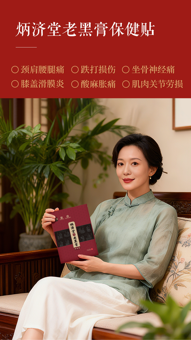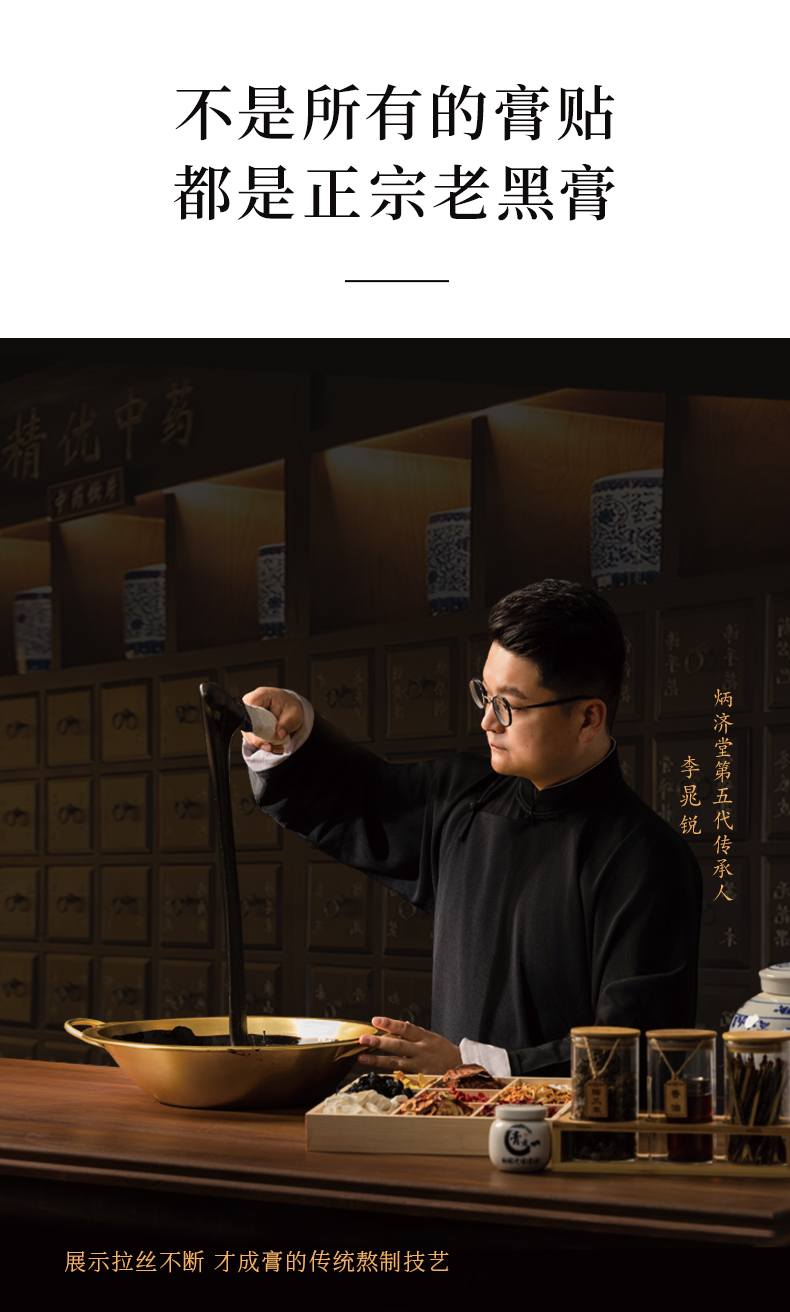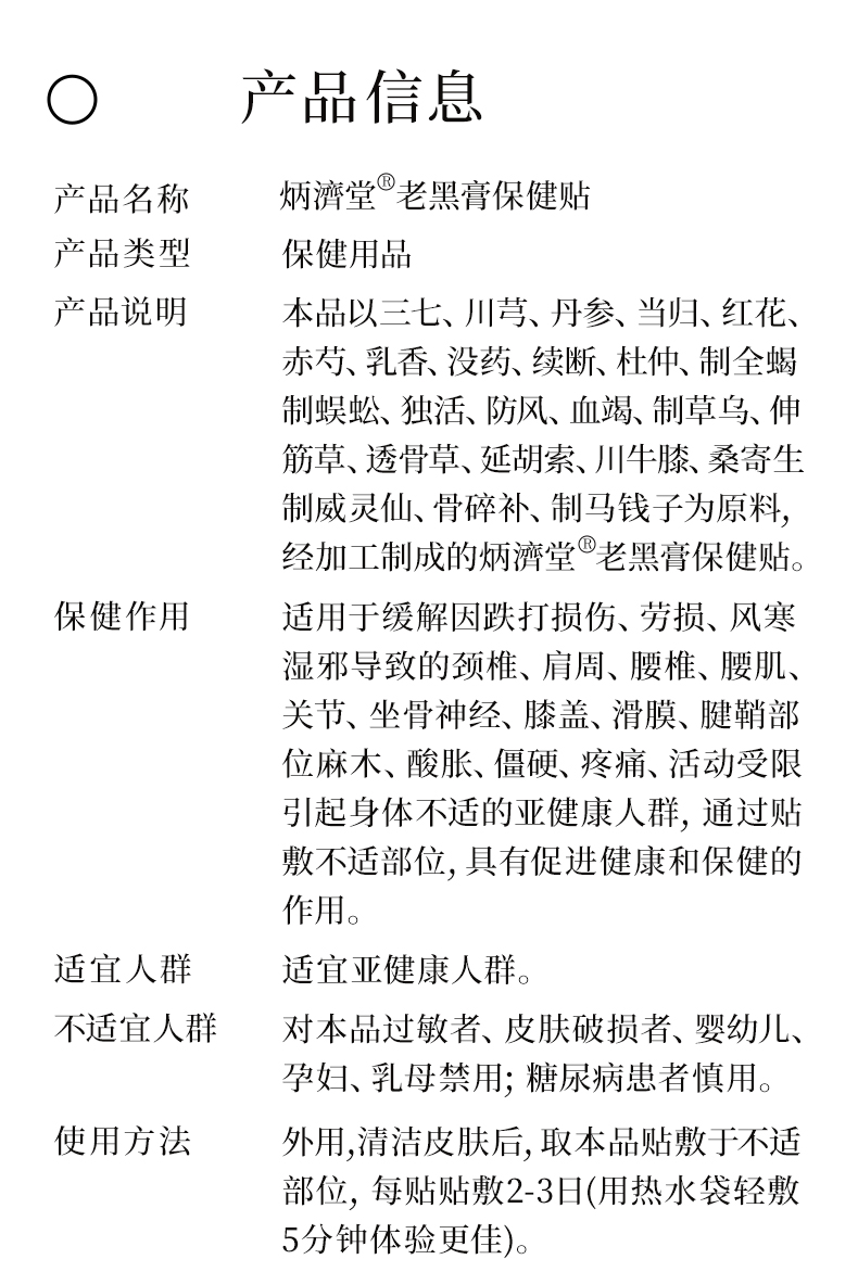 炳济堂老黑膏保健贴 适用于缓解因跌打损伤、劳损、风寒湿邪导致的颈椎、肩周、腰椎、腰肌、关节、坐骨神经、膝盖、滑膜、腱鞘部位不适