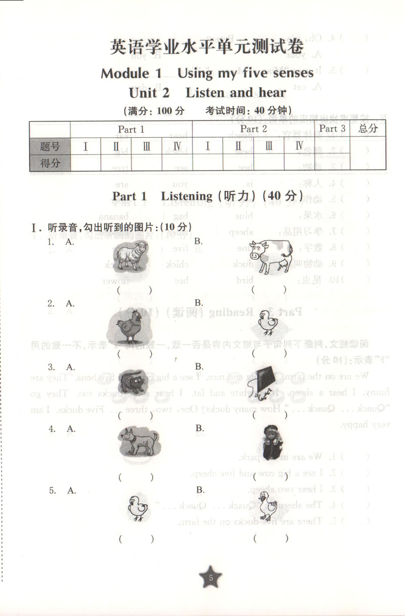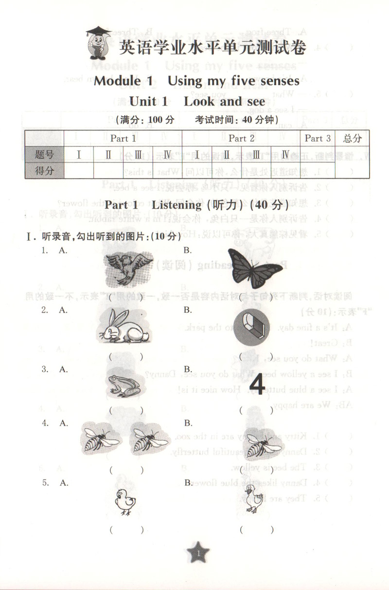 交大之星 学业水平单元测试卷 DY34 英语 1年级/一年级(下册)含光盘 第二学期 与上海市二期课改教材配套