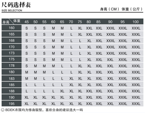 ⚠️注意:BDEK衣服均为修身版型 喜欢合身的建议选大一码 T恤尺码对照: