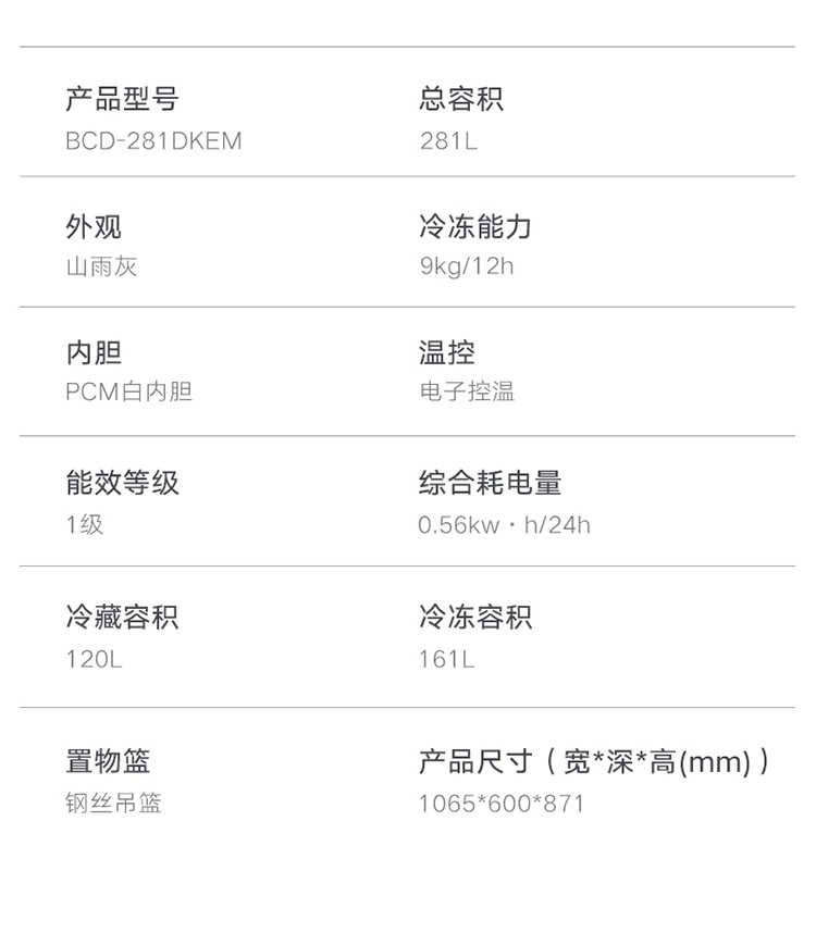 美的(202887) 冷柜 BCD-281DKEM 山雨灰