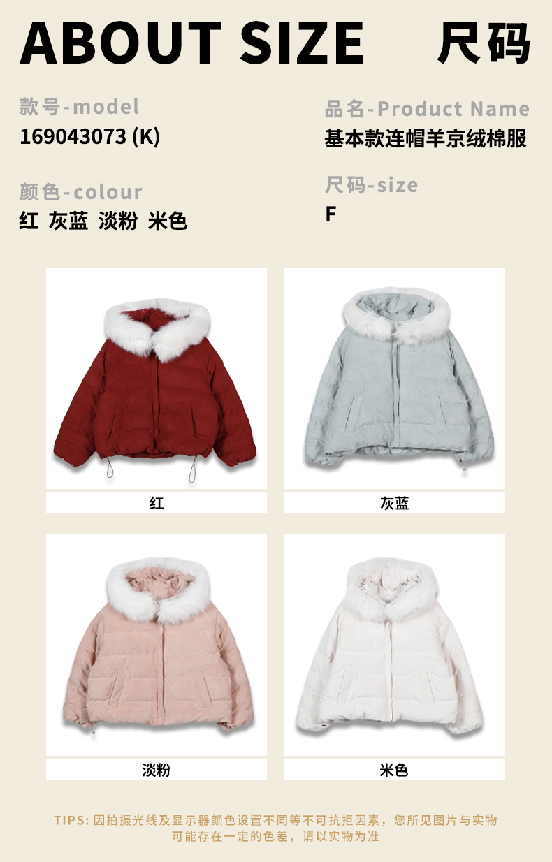 可爱甜美风基本款连帽羊京绒棉服-纪念日百货门店同款169043073