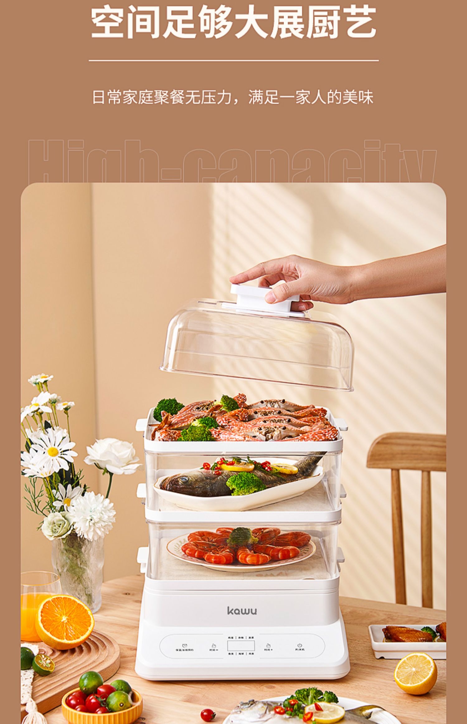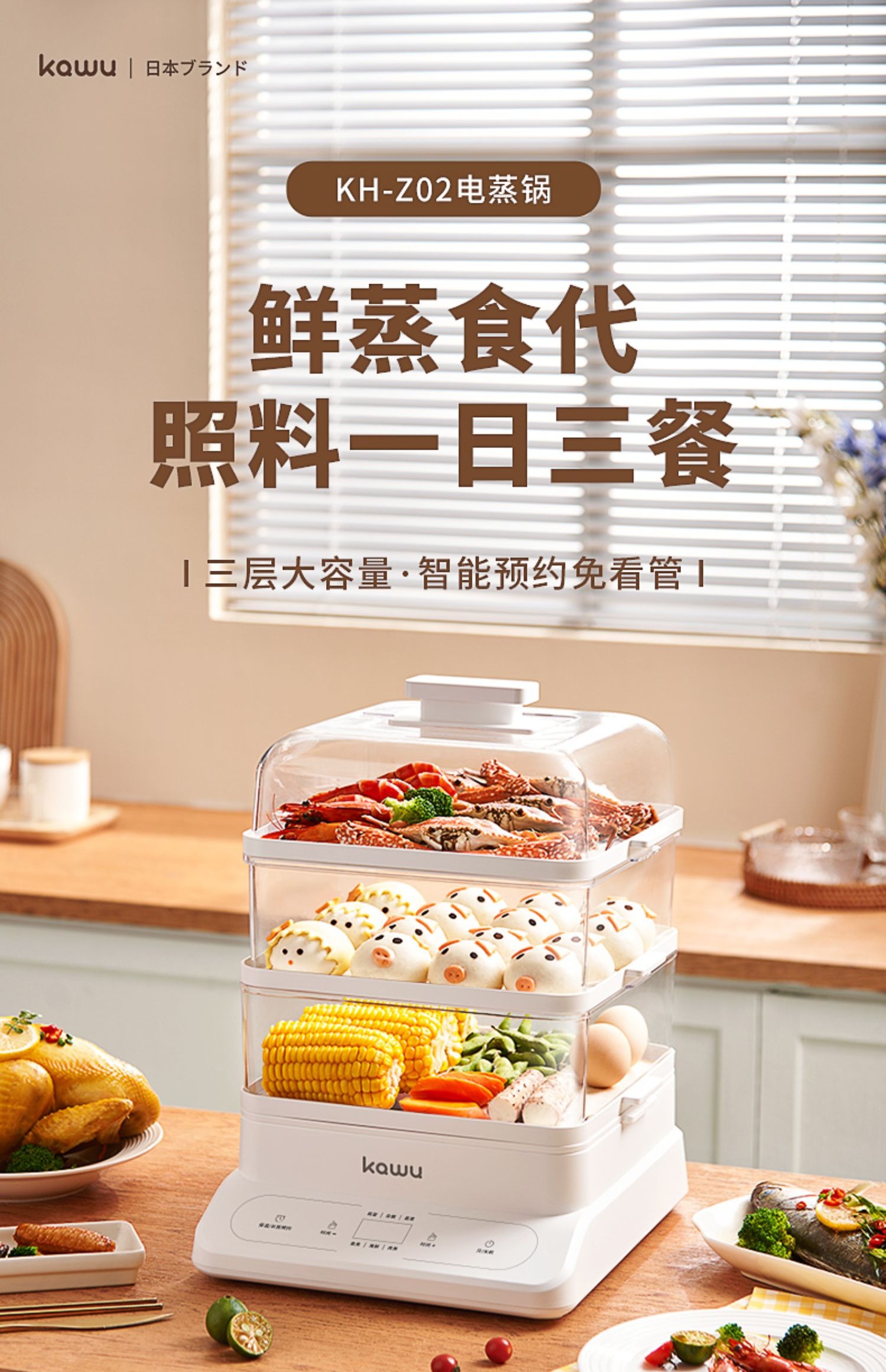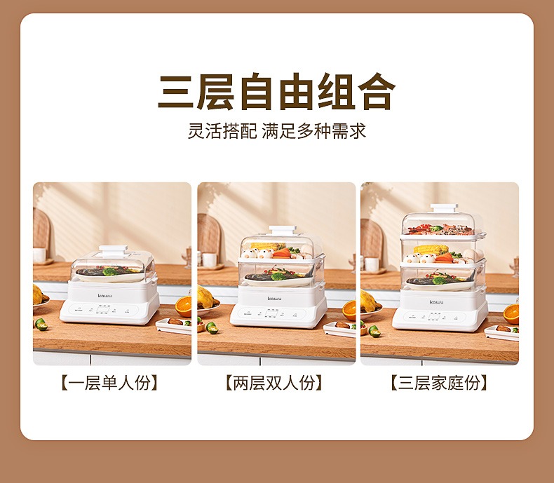 【24小时预约 三层大容量】日本kawu卡屋折叠18L大容量聚能电蒸锅蒸炖锅多功能家用全自动预约蒸汽锅