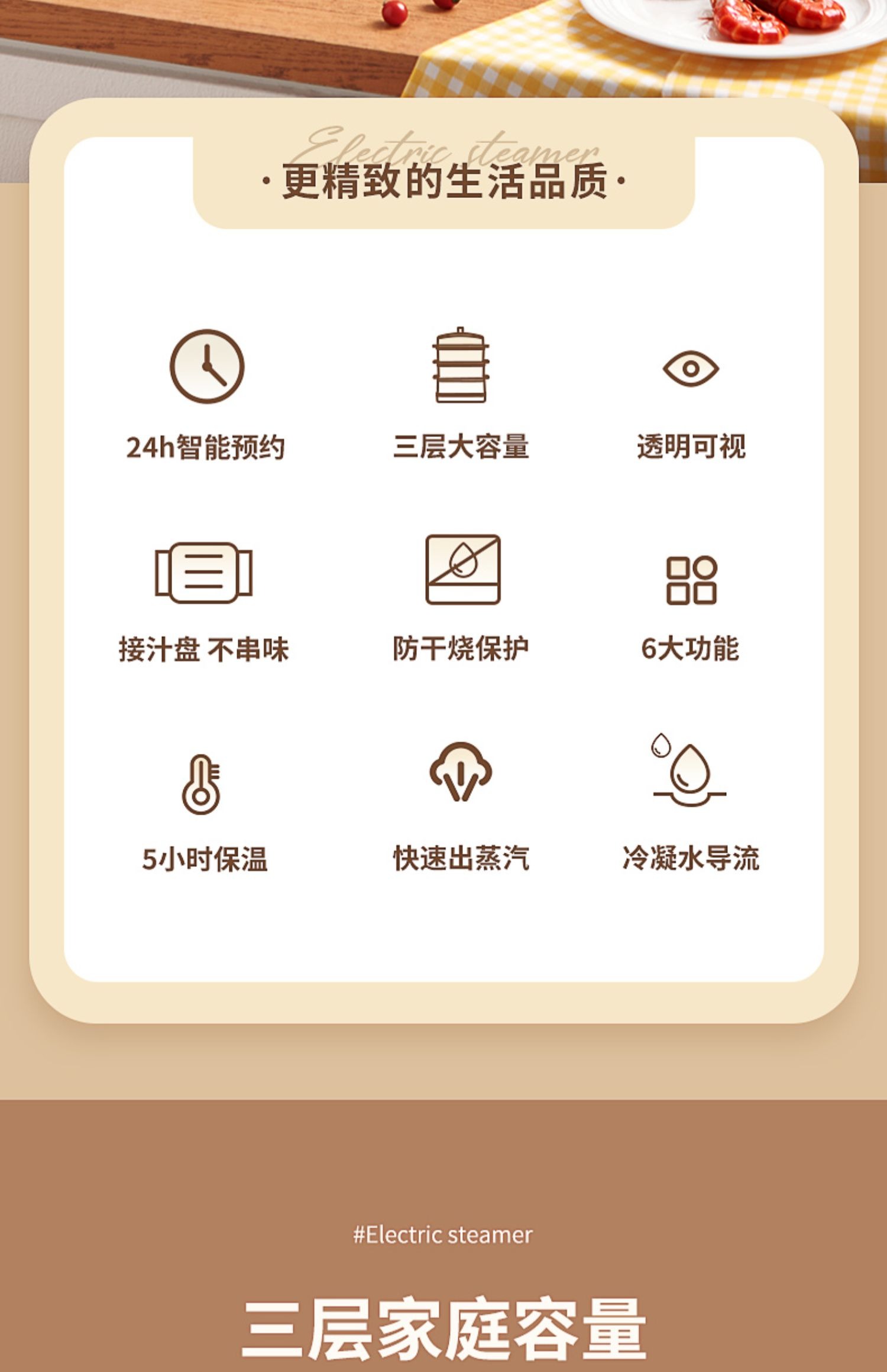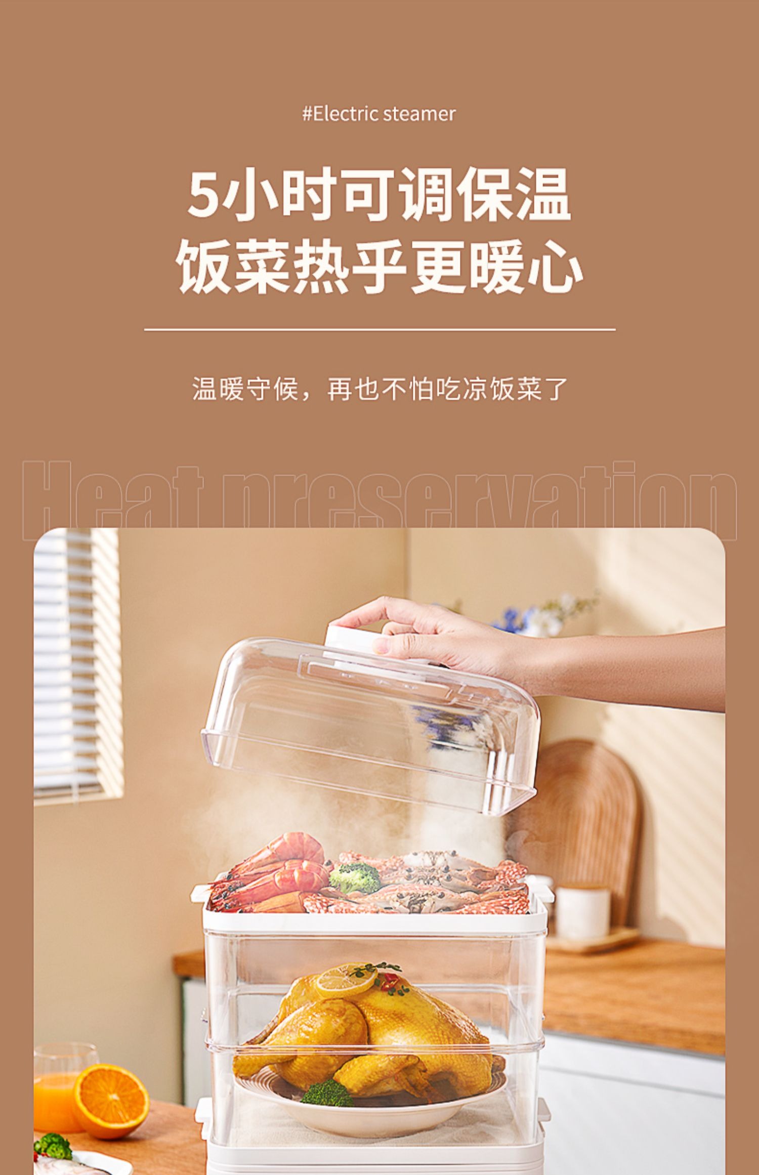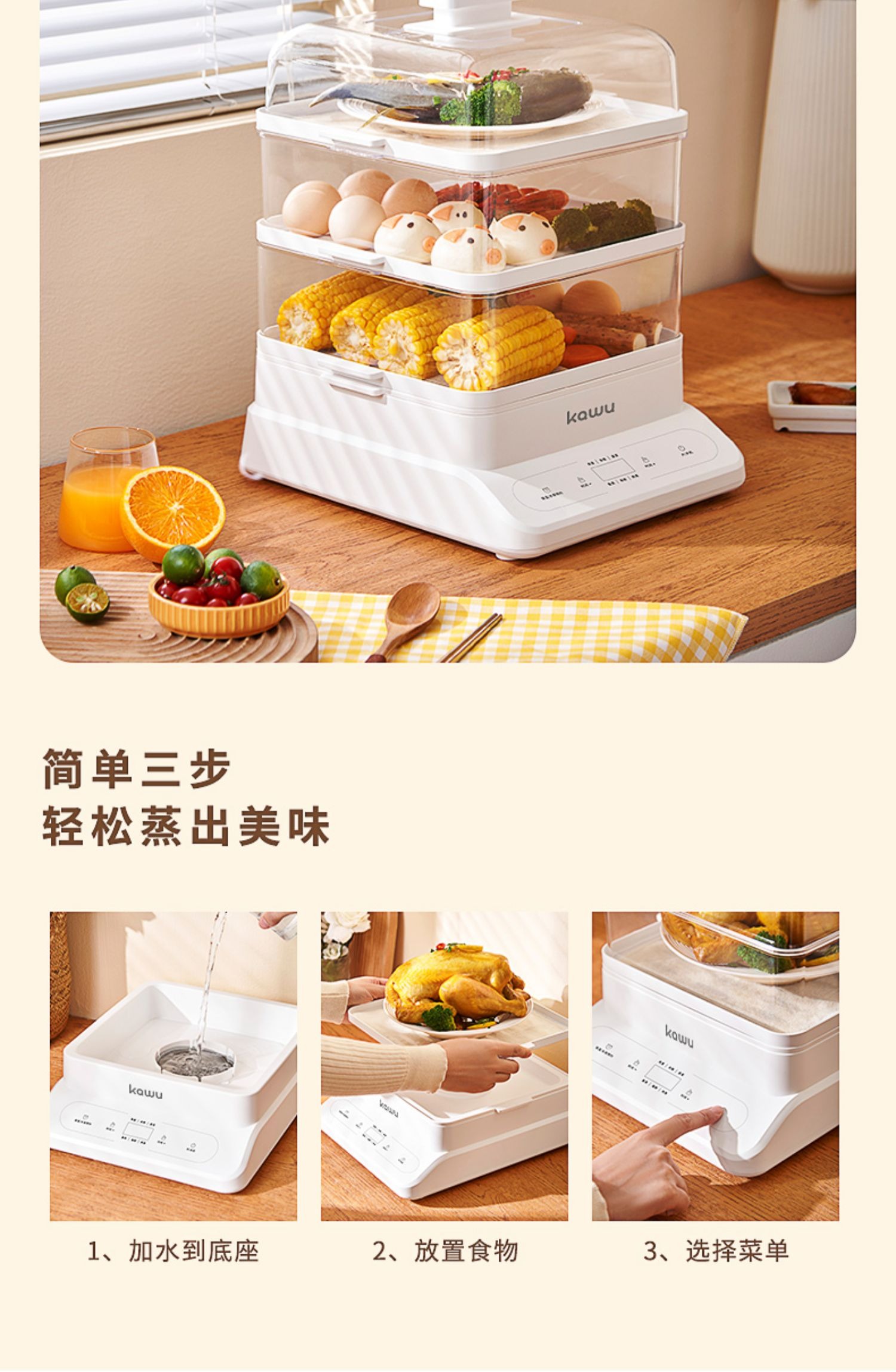 【24小时预约 三层大容量】日本kawu卡屋折叠18L大容量聚能电蒸锅蒸炖锅多功能家用全自动预约蒸汽锅