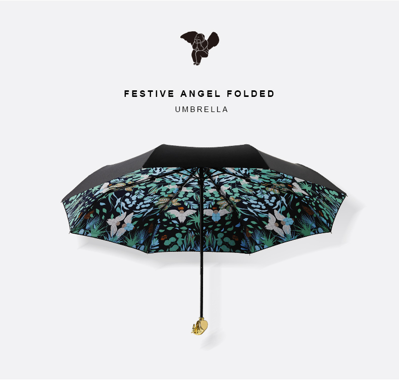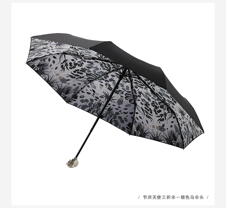 稀奇艺术 银色卡通伞头 晴雨两用三折伞