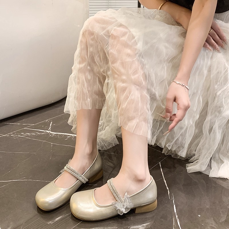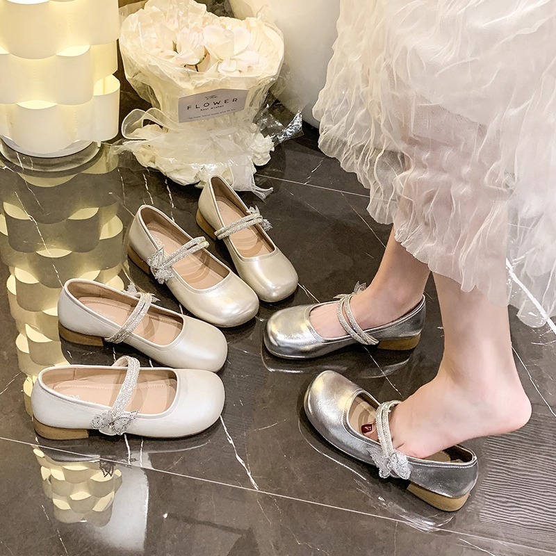 【YW】无忧购法式水钻玛丽珍鞋平底浅口一脚蹬复古配裙子单鞋617(截单后3-5天发货)