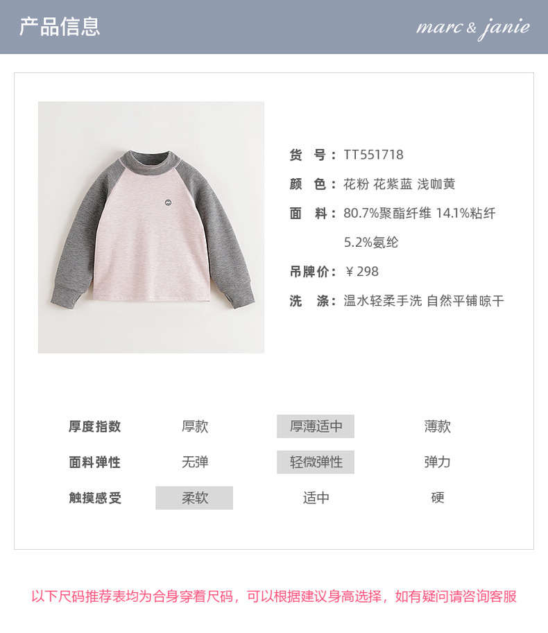 【珍珠绒】马克珍妮男女童轻暖高领运动T恤2025年秋装新款551718